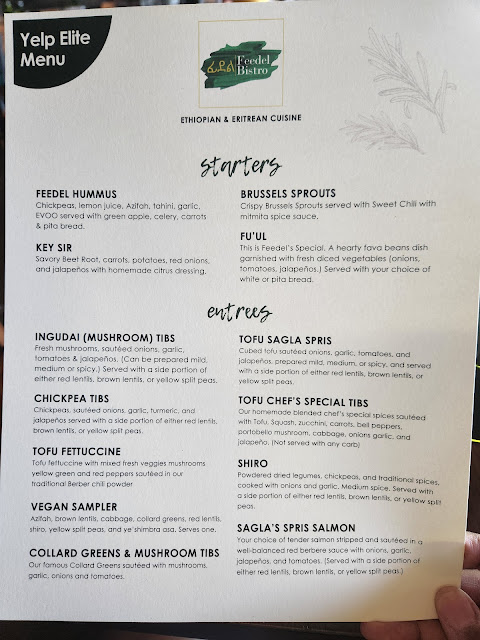 First, the spread and variety of foods they prepared for the event I attended were amazing and really gave us a chance to try the dishes that set them apart from the rest. Second, everything on the menu was really good and while there were things that just were not "my" preference in general, the way they are prepared here I would absolutely try them again. As I've said, everything was amazing and delicious but my absolute favorites and what I'll be returning to have are: Feedel hummus, fu'ul, tofu fettuccine, and sagla's spris salmon. These are the dishes that really set them apart and dishes I have never seen at other Ethiopian restaurants.