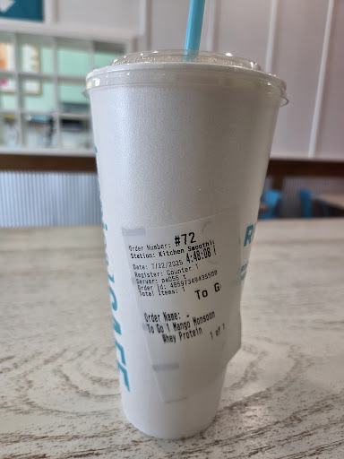 Went here last week and was very impressed! The atmosphere was very beachy, it was light and formatted in a way you would find a cafe in a beach area which was really cool. The people were very nice and very quick. The smoothies were good, the sizes were so big and not that expensive! Plus, they filled it to the brim, they were not stingy at all. The only thing I would suggest is adding more food options that don’t contain chicken, I like chicken, but it’s grilled chicken in every lunch item there which isn’t really my thing, so I would recommend a few more food options. But overall, good prices, good quality, and good service so a...