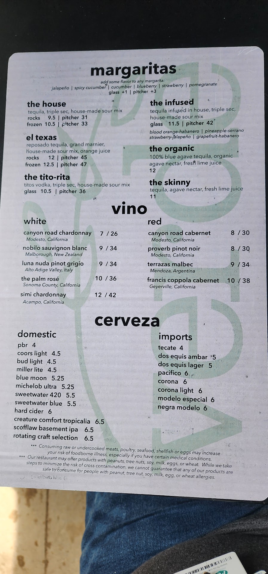 Food/drink: look, it's not trying to be authentic, so if that's what you want, please look elsewhere. But if your horizons are broad enough to accommodate some southern/Mexican fusion, this spot is fantastic. Corn tortillas (store bought, but they cook em so I forgive this) on demand. Pulled pork, fried chicken, calamari... The taco choices are amazing. They are full size, double wrapped and overstuffed. Some call this a sin. I call it a guilty pleasure. Overstuffing a taco is just the chef's way of showing off, and I'm ok with it. The only issue is that after two tacos, you feel like you need to be rolled away. They've also got black beans and plantains just to make me smile. Bar is fully stocked. Four Roses, what!!!!!