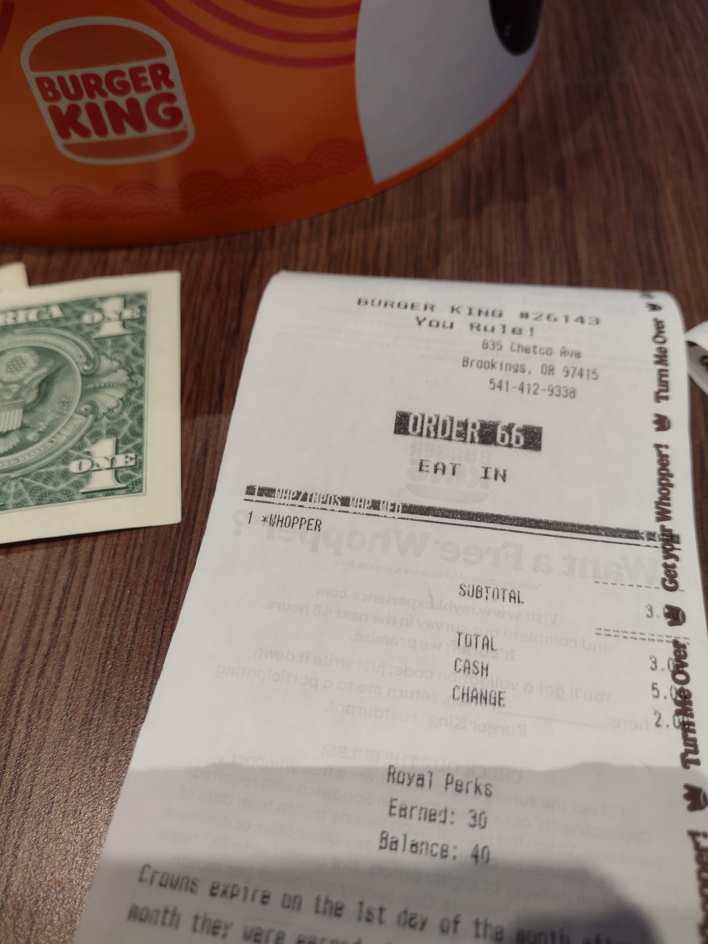 Read moreIve been to this Burger King twice, both times were awful. My first time, I arrived after 10pm and ended up waiting in the drive through for around 25 minutes. When I got home I found out that I was given the wrong order. But they even managed to screw up the wrong order. From the meal ticket that was taped to the bag I could tell they forgot to add the drink to my wrong order. When I drove by to try and return the food, there was no way to do so. The doors were locked and the only way to return the food or ask for a return was to wait in the drive through for another 25 minutes. So I did the reasonable thing and went to the Mcdonalds next door.