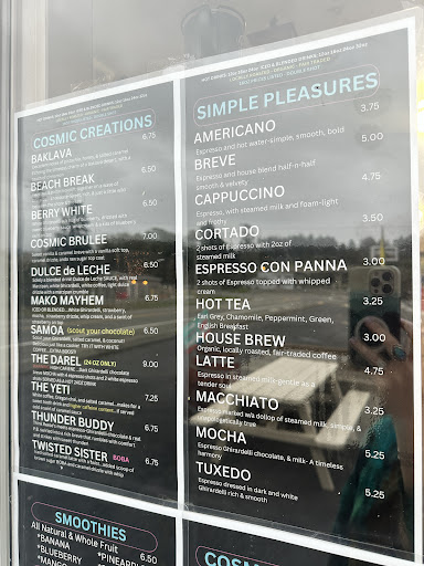 best service EVER!! me and my family came by unexpectedly just trying to find an open coffee shop when we came across this gem! there were SO many options to choose from just in general! teas, coffees, lattes, boba drinks, smoothies, pastries and other baked goods, and much more! the worker in there who served us (i think she was the owner, and if so her name is jessica. props to other google reviews for telling me that haha!) was super sweet and made sure to answer any questions we had and offer all options of everything from flavors, to temperature, to whatever else you can think of! my moms ordered coffees and they both loved them! i got a chamomile rose tea and when i tell you i was shocked, you have to believe me. IT WAS PERFECT!!! i also got the raspberry danish which was just splendid! loved it. if i could give this six stars i would! great service, great flavors, great energy! we will definitely come back here next time we...