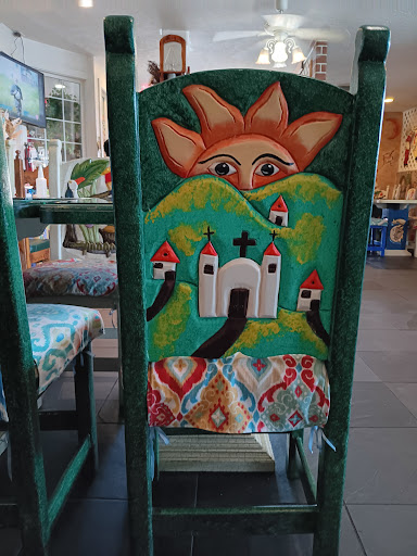 Beautiful interior to this restaurant makes for a great atmosphere. Artfully carved and painted chairs and tables. **The burritos aren’t the huge ones that I’ve come to expect from Mexican restaurants but that was okay with me since I can never finish those things anyway. All but one of us got something off the “specials” menu and our total for 6 people had my husband checking over the receipt to make sure they hadn’t forgotten to add anything on to it. The service was friendly and our guests were impressed that our waitress got our entire order correct without writing any of it down. We couldn’t find a kids menu so the kids ate my rice and beans and I ordered a side of tortillas for them. The waitress brought a book for them to read/look at while we waited.