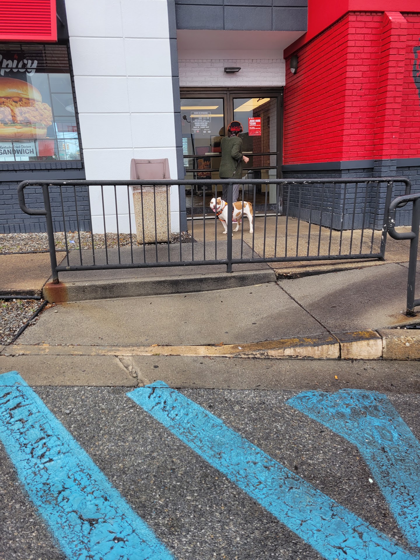 Read moreMy visit to KFC was terrible. I did a mobile order and went to the door to pick it up, and the door was locked. A few minutes later, a lady came out with a DOG on a leash!! She obviously worked there and was a manager because she had a stack of keys and locked it behind her. I knocked again on the door they didn't bother to come over to me they just motioned with their hands to "go around" the only other place to go was the drive thru and that completely defeats the purpose of mobile pick-up or quick pick-up. The drive thru had 10 cars in line!!! It took 30 minutes of waiting in the drive thru to receive my order, and the food was over cooked smh. This KFC is known for locking the door so customers can't come in, very inconvenient!! Having a DOG inside the building... VERY UNPROFESSIONAL, DISGUSTING! We all know Dogs shed, and had I seen that dog before I made a mobile order, I wouldn't have ordered from there, period!! Major franchises like KFC, regardless of who owns that particular one, should be following standards of all franchises and keeping a DOG in the building where food is made and prepared, I'm sure...