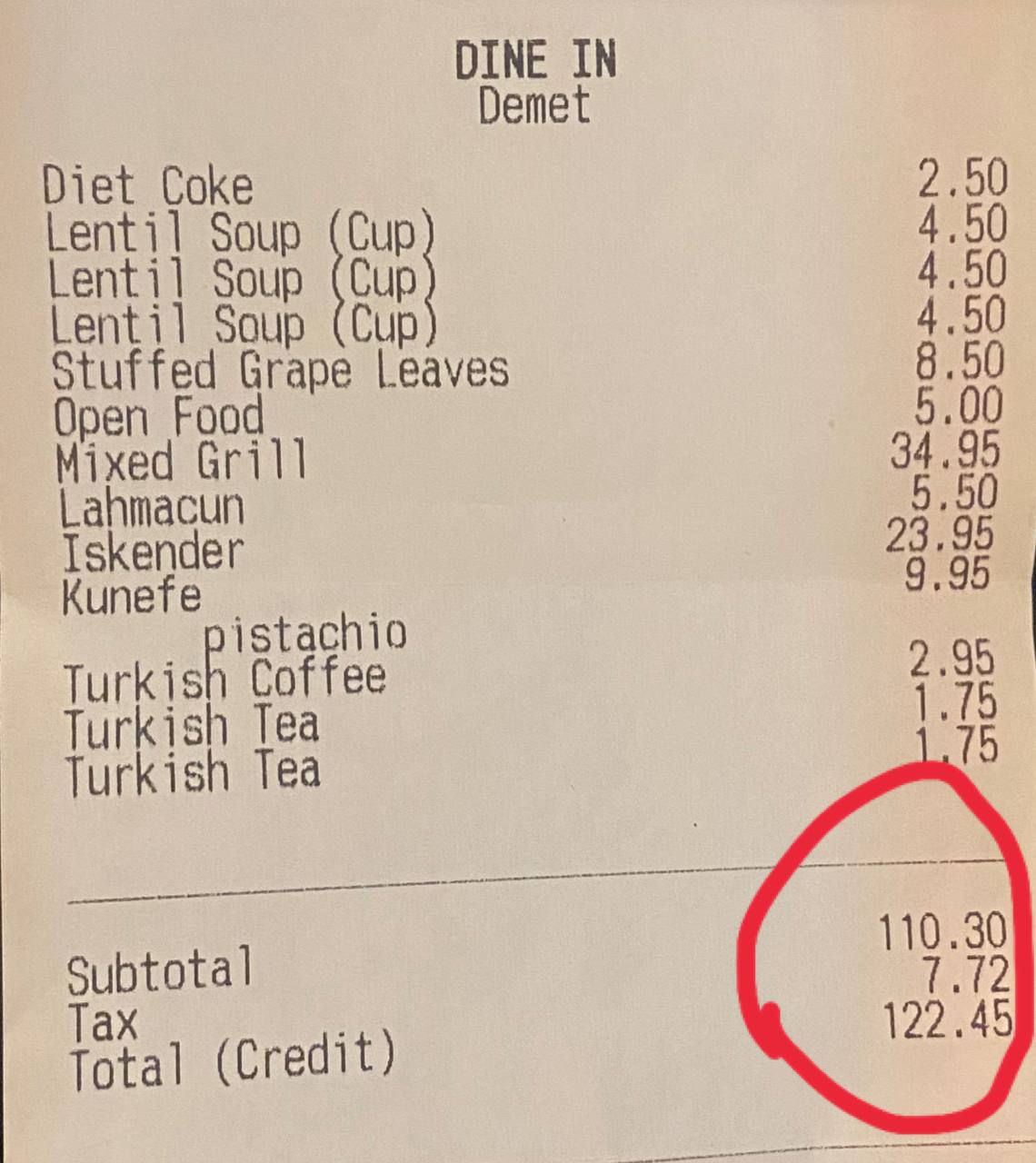 We went to dinner at Anatolia’s recently, and while the food itself was okay—just “meh,” honestly—the overall experience left a far worse taste in my mouth, and it had nothing to do with the cooking. When the bill arrived, I noticed several surprise charges that had never been disclosed ahead of time. First, there was a $0.75 charge per takeout container. When I questioned the container fee, the manager told me it was “Brookline law.” I checked—it’s not. That is just their business decision to do so, and if such is the case, say so, do not blame it on Brookline law. We eat out in Brookline all the time, get takeout often, and I’ve never been charged for a container. And these weren’t reusable containers, either—they were flimsy, single-use aluminum with plastic lids. Secondly, I noticed another charge, for a small sauce—served in one of those tiny ketchup-style cups—I was hit with another charge: $0.95. And it wasn’t even good; it tasted like watered-down something. It didn’t end there. Thirdly, I had also ordered a wrap sandwich for takeout. The menu description clearly offered a choice of hummus, baba ganoush, or eggplant salad—no mention of an extra charge. Yet there it was on my bill: another upcharge of 50 cents. When I pointed this out, the manager deflected and even blamed the waitress, who was standing right there, rather than acknowledge the lack of disclosure. When I reminded her she hadn’t mentioned the sauce fee either, she brushed it off with, “Restaurants always charge for that.” (They don’t. And we dine out a lot in Brookline, Boston, and beyond.) and that maybe next time I shouldn't order "extra". I even read the sandwich description back to her from the menu—“choice of X or Y”—but she still insisted it wasn’t the case. Eventually, on principle, I wanted her to remove the 50 cents. She agreed but when I got home and checked the receipt, I saw that while she credited me $1.50 instead of $0.50, she also increased the price of the main item. End result? I still paid the original price plus the $0.50 she supposedly removed. And just when I thought we were done, I noticed the final kicker: the bill showed two totals—one for cash, one for credit—and the suggested tips at the bottom were calculated on the higher amount.