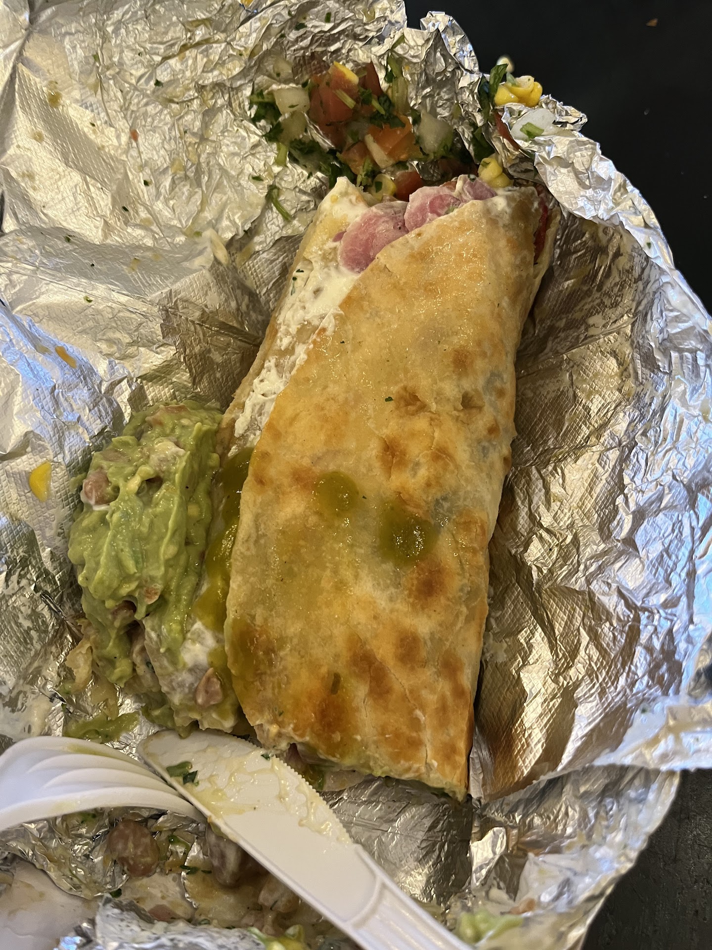 I gave them another try and ordered a super burrito with chili verde. I noticed it was small and measured it only as 6 inches long. I'm pretty certain they gave me a regular burrito instead. The chili verde was moderately spicy and it was delicious. It was also wrapped properly this time.