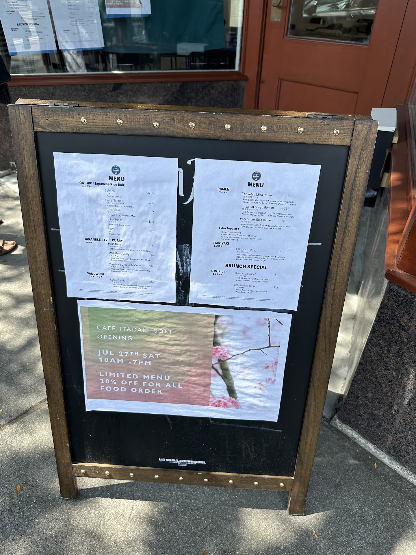 Ā Ā Ā Read moreLet me give it to you straight: 4 stars. But: there are two crucial things you have to keep in mind. One: I am an extremely experienced local guide whoās traveled the earth. Two: this will get better! I like to tell a brief story for my reviews. I walked by that place once upon a time and it was empty. Where the old Pomodoro had been before. I thought to myself āa Japanese cafeā. Then: cafe Itadaki appears a place of my dreams. When you enter you see they kept a lot of the old tomato store that was in there before. Crucially this amaaaaazing bar counter in the middle o I walk in and am greeted by a kind of kind host slash waiter. Iām getting what I want and Iām not talking a challenge for me as a local guide haha thatās another story but an Onigiri spicy tuna and Omorico. Guy gets it out quick, cuts open the Omelette thatās on the rice for the show and lets me indulge. I think he mustāve noticed from my aura that I am a local guide but who knows. The onigiri is a low to no brainer - very affordable and a large portion. I think it is only like 3 bucks. They couldāve added more filling but in the end this wouldāve increased the price. Thatās onigiri pricing 101 right here! The Omorico was fine but not great a little bland. Please improve here. The atmo: omg for anyone who knows anything about me, itās the atmo. It is a nice cut e cafe style place I like it! I mentioned the counter top...
