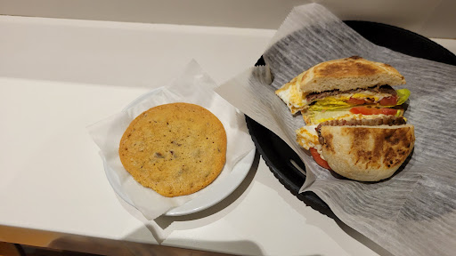 The most important aspect of a cafe to me, though, is the food, and I was really disappointed by what I received, especially for the price. All of the ingredients on my sandwich were low-quality, and the lettuce was dry and stale! There was no sauce or other strong seasoning or flavor to the sandwich. The chocolate chip cookie was also pretty disappointing - it was thin and crispy, but a bit dry and eggy at the same time, and the chocolate used was - frankly - terrible! I had trouble finishing. I would not recommend getting food here. I'd be okay with all of this if the cafe were cheap, but I ended up paying a price I associate with high-end cafes in the Boston area - of which this is not.