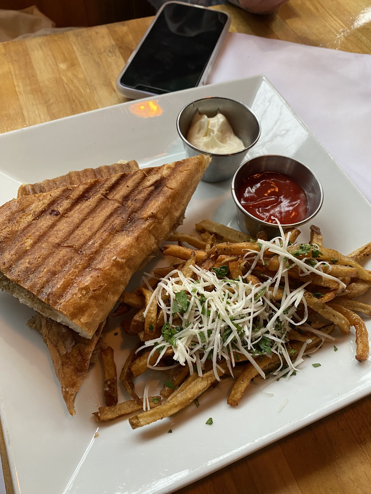 Read moreMy son and I went for a late lunch; not the best experience. The waiter handed us the menus and stated, "The only thing we're out of is the stew." Not a problem. My son ordered curried eggs and the French dip egg roll, I ordered the mussels. "I think we're out of the mussels." Wait.....but you just said....... Instead I had the cheeseburger/fries cooked medium and a side salad, requested dressing on the side. It took awhile for the food to come, surprising since there were only 3 other people in the pub. My plate arrives and it's missing fries, and the salad came dressed and no pepitas. I cut open my burger to find it bright pink, not medium. I asked for it to be cooked a little more, and it easily took 15minutes, when it should have been 5 max. It wasn't because they made a new one, I hate wasting food and made a point in telling them to just cook it a little more. By the time my burger arrived, my son had finished his lunch. About those fries? The mix-up was probably a good thing. I could see a big mound of precooked fries in the kitchen. Since it was 3:00, who knows how long they had been sitting there. The staff was friendly enough, and the food was okay, but I probably won't return. Especially since the errors happened when the restaurant was...