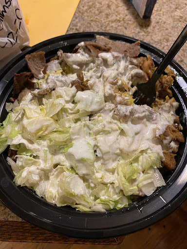 Food: I got the Gyro Combo Bowl so that I could try their chicken and lamb, and for sauce I got it with their cucumber sauce; overall it was... uninspiring. Nothing in the meal was particularly flavorful on it's own or when combined with the rest of the ingredients. Cucumber sauce was bland, the chicken didn't seem like it had any seasoning at all, the lamb had seasoning but it was minimal, and the basmati rice was very yellow, but not much else.