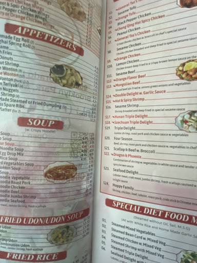 Ā Ā Ā Read moreordered takeout and got salt and pepper chicken wings, seafood delight, hot and sour soup, wonton soup, and beef with mixed vegetables. They were nice enough to throw in free donuts, which were really good!