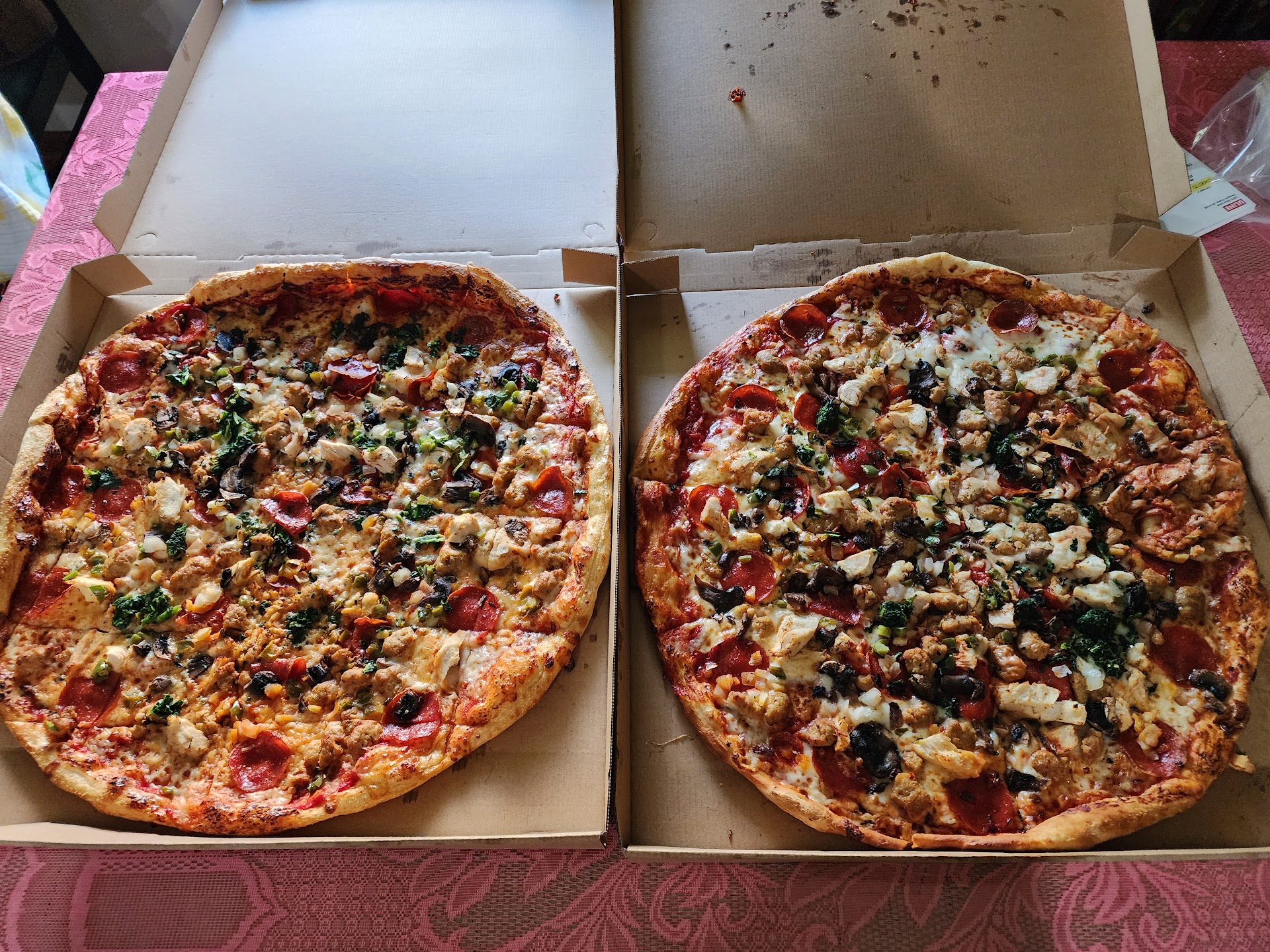So once my order was taken to the back to be prepared, I started my wait...eventually after about 25 minutes, the first of two pizzas were placed into the oven, which was confusing to me as I thought since I ordered 2 identical pizzas that they'd be prepared at the same time, especially since the first one took 25 minutes to prepare.