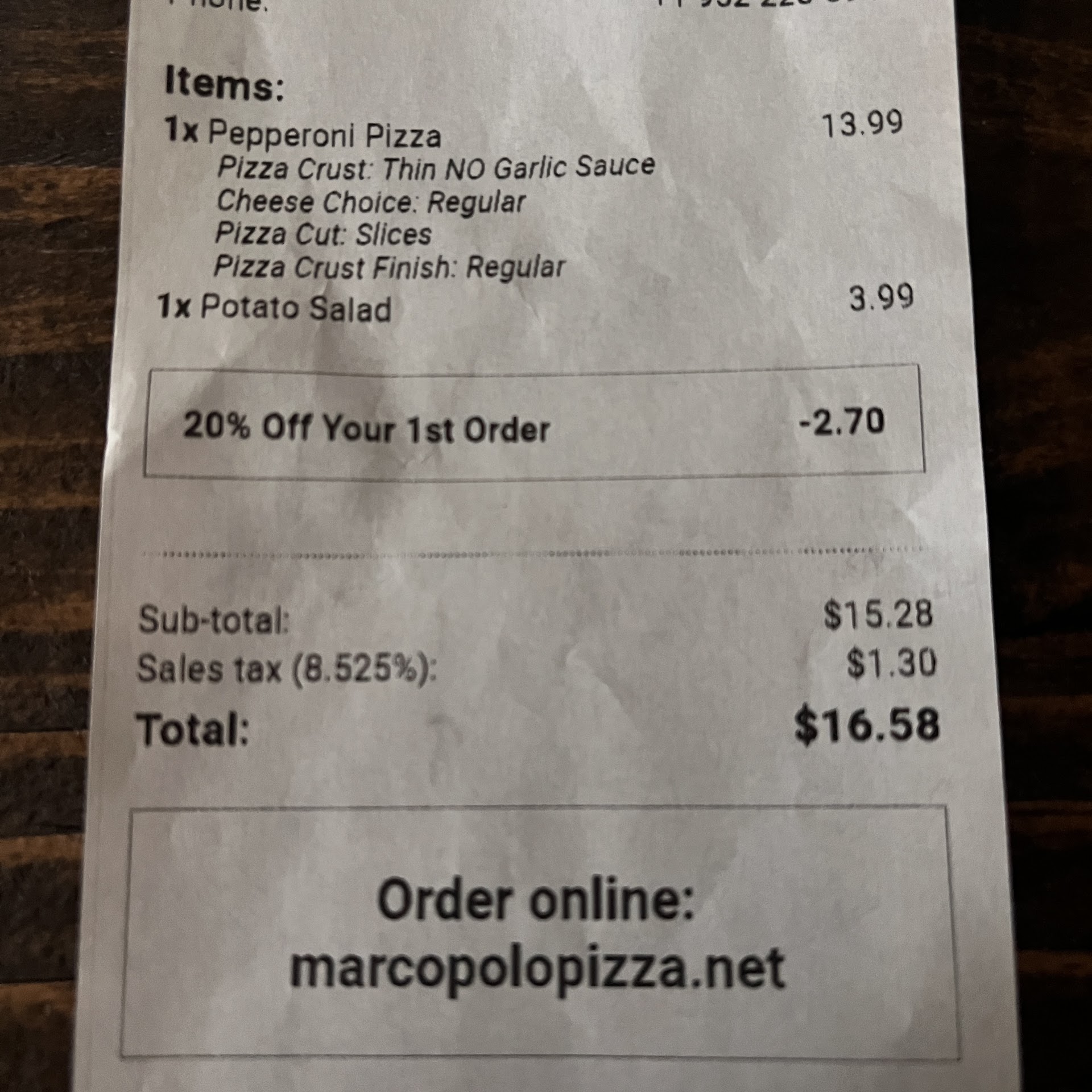 Read moreWas not impressed with the business on my first visit. Don't get me wrong. The pizza is okay, I would compare to Davannis, but what stood out was I ordered a thin pepperoni pizza and a potato salad. They did not have a potato salad and instead of offering me a refund or substitute, proceeded to tell me that the price of the pizza was $15.99 instead of the $13.99 the website and the receipt at the store both said. (See photos). Said the $13.99 is the old price. Well why then is the website and the receipt both showing the old price and this info is only told when picking up and after the other item I wanted wasn't available. Should be a simple change to update the price in the system and website since most people will order online. Also asked to pay with cash as they said the system wasn't working, but looked like it was working fine on my end. Wonder if that is due to trying to get out of refunding me the $3.99?!?! This alone will keep me from coming again as I feel I can't trust pricing of item or...