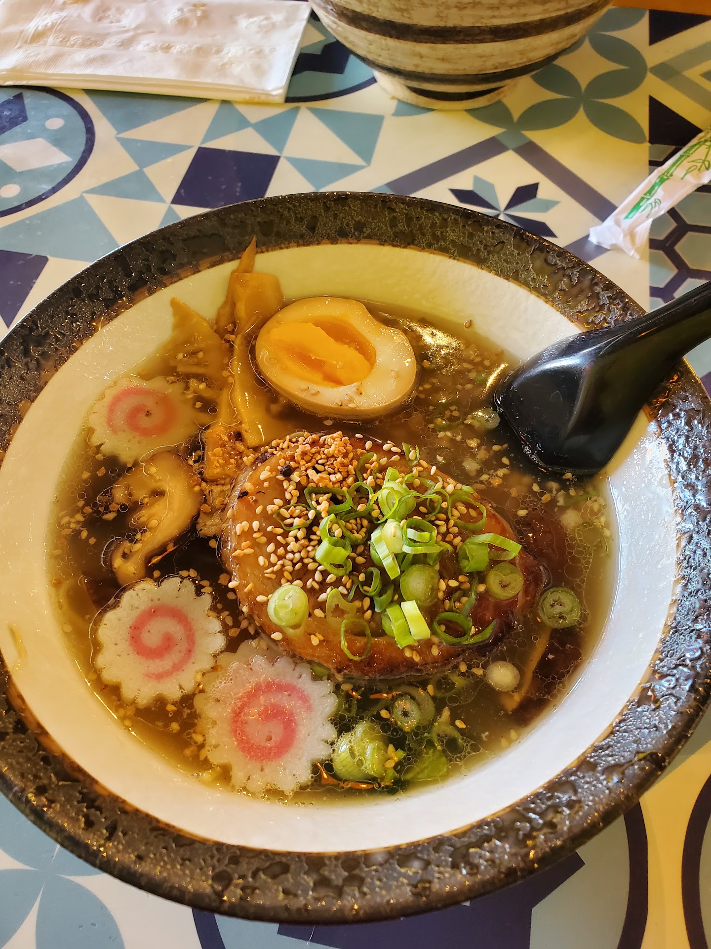 The ramen, was not the greatest in my personal opinion. I ordered the "Chashu Ramen" & it tasted similar to pho and had a lot of sesame flavor. So on the website it says "served with thinly sliced pork" but the pork was thick, HOWEVER, it was delicious 😋! I did read another person's review on here about a good bowl of ramen & they mentioned how good the pork and egg was compared to the broth and noodles & I can see why. I also agree that I enjoyed more of the pork & boiled egg than the broth and noodles. Even though the broth is the key essential when having a good bowl of ramen. It was a bit bland & I will say I miss that creamy Tonkotsu broth.