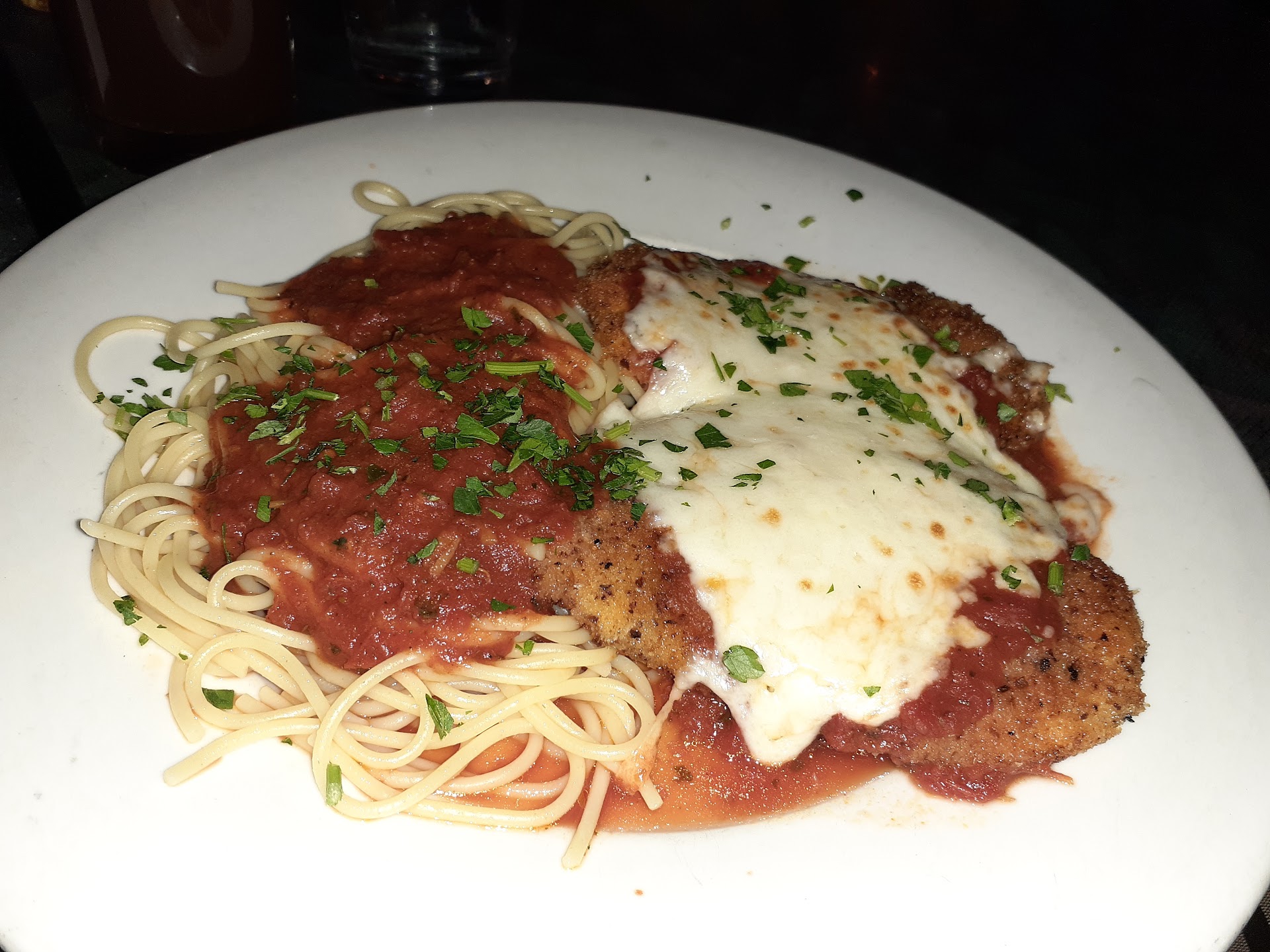 I got my meal rather quickly and looked great! The soup came first (not counting the awesome rolls with room temperature butter that spread so easy versus that basically frozen butter) and it was delicious. It did basically taste like chicken and rice soup with spinach though. The calamari steak arrived with mixed vegetables and a small bowl of spaghetti. The vegetables were cooked well. Not over done or too al dente. The calamari steak was tender and cooked well at the same time. The flavor at first was good, but it tasted much better with the sauce. The sauce alone was just a tomato sauce...nothing special. I make better spaghetti and sauce at home.