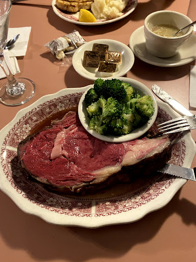 Read moreI have to say that this was shockingly bad. We were just one of a couple of diners in the restaurant and the service was oddly slow. The salad bar was replete with old vegetables that showed every sign of being well past prime and beyond consumable. The lettuce was brown, the carrots were dried out and covered with that white cast, the beets were something out of a can. The salad bar was lacking and very pedestrian in its offerings. It reminded me of a bad cafeteria. The salmon I had was just mediocre, farm raised and rather small in portion. The baked potato was seriously underdone and came unadorned with only a packet of sour cream on the side. Really guys? A small foil packet of sour cream? Nothing here that you can't buy at Walmart. For this they charge 18.99? My husband ordered the New York sirloin steak which came topped with a blue cheese crumble. An even odder combination. The steak was grey brown in color like the color of oxidized meat and had a rancid smell to it. It was most undeniably unhealthy to consume. We both got the impression that this was something that had been sitting around in the refrigerator for too many days and utilized instead of being tossed to reduce loss. The blue cheese crumble was foul. I couldn't help wondering if it was used to mask the smell of the old meat? (And for this kind of meat they were charging $30? I can buy the same steak at my finer local gourmet marketplace for $13.) Truly this was frightening enough to report to the Board of Health for proper inspection. I don't believe all the health codes are being observed here. The only nice thing about this experience was the waitress. She was kind and conscionable enough to rightly take the charges of the unconsumed steak dinner off the bill and brought my husband a dessert gratis. And so for that, I give...
