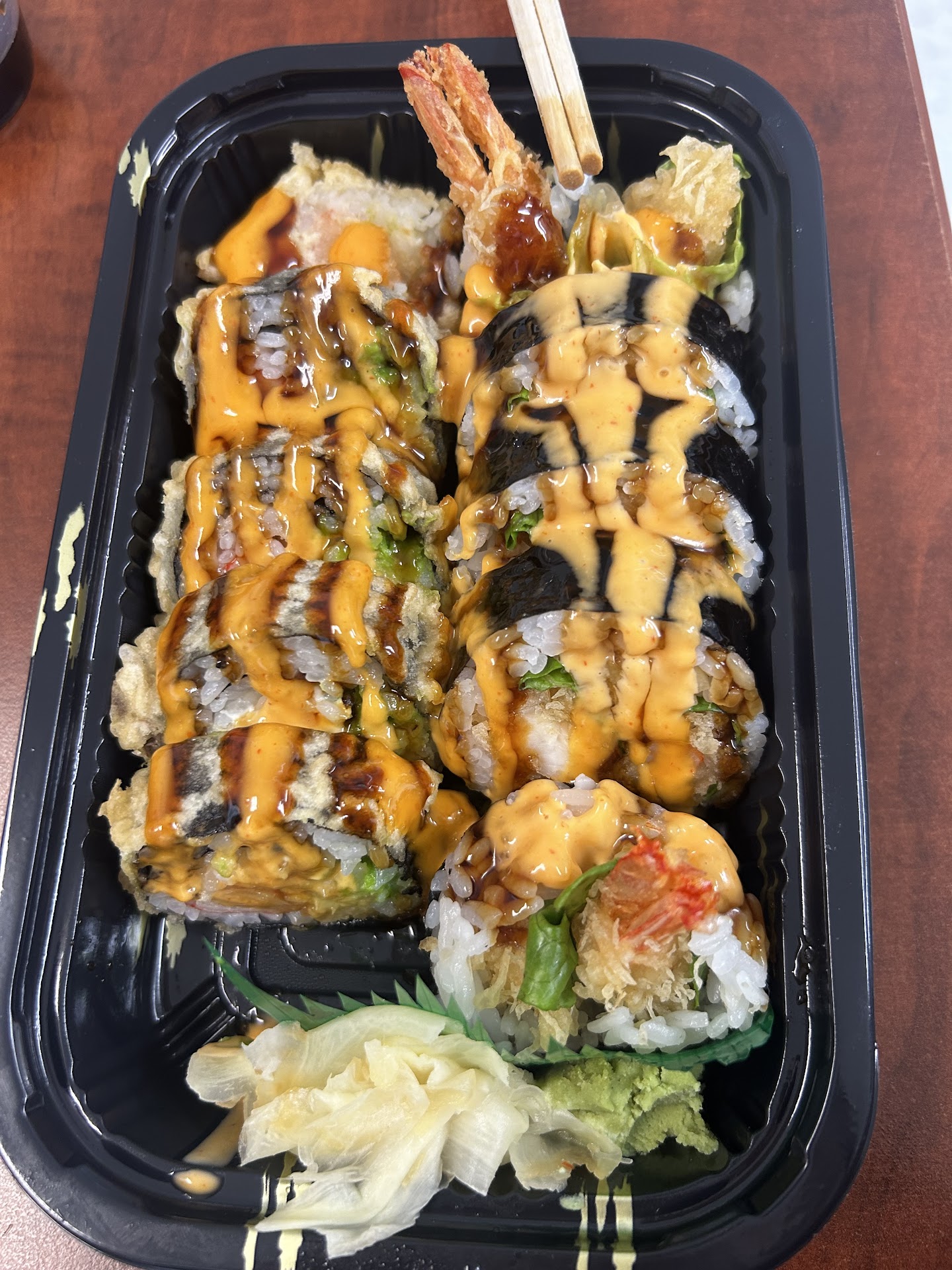 Read moreIncredibly poor service ruined this restaurant for me. Ordered a small scorpion bowl to share, a water, a soda, an appetizer, meal, two sushi rolls and an order to go. The small scorpion bowl came out in a glass with one straw. When I expressed my confusion the waitress said she could pour it into a bowl, bring another straw or another small scorpion bowl. Don't bother with the small if you're looking to share, it comes in a glass. I'm not even sure why they would even bother advertising this as a 'bowl.' The meal came out and was finished before the sushi, which was ordered as my meal, was ever brought to the table. When we finally got the attention of the waitress, we asked for our check and our take out, and the waitress stated the WRONG order was being put in for us. We then had to pay for our meal at the table and then, go to the register immediately afterwards and pay for the take out. The sushi was good but, they use the mushy stuff, not the whole fish like I prefer with sushi. Also, I noticed that when the guests next to us left, the table was not cleaned even after twenty minutes. All in all, I won't be returning again anytime soon, if ever. There are better restaurants in the area with much better quality...