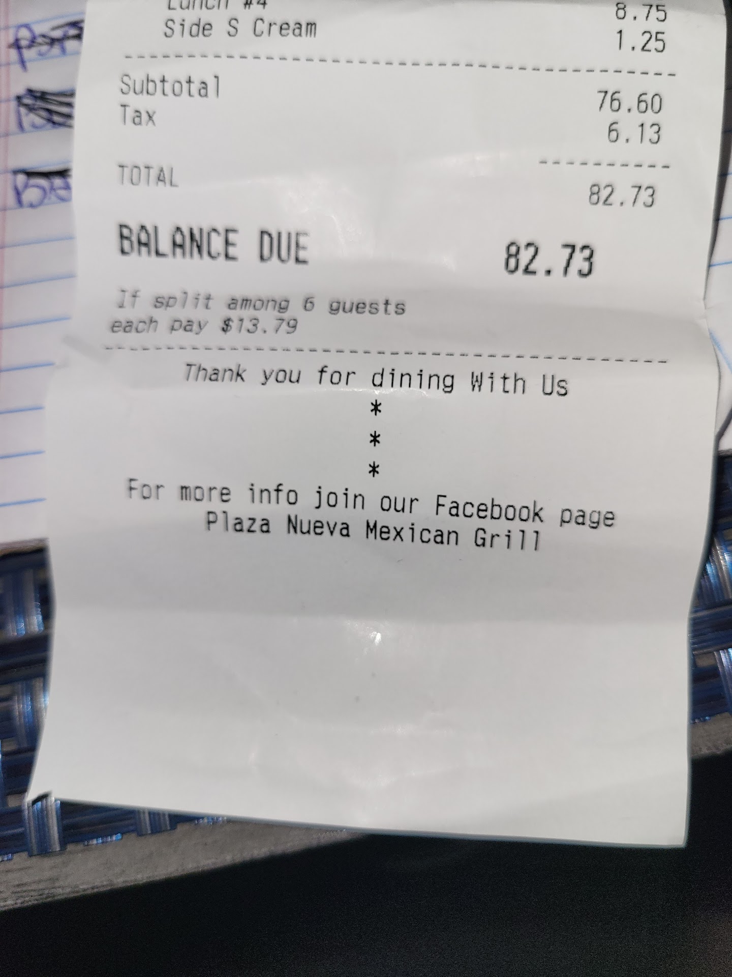 Read moreWe don't even know where to start...If we could give them zero stars we would. The two employees (the cashier and the young lady who served chips and salsa), had an excuse for everything we brought up, along with another customer checking out with us. It was our first time there and we will never go back to Plaza Nueva.