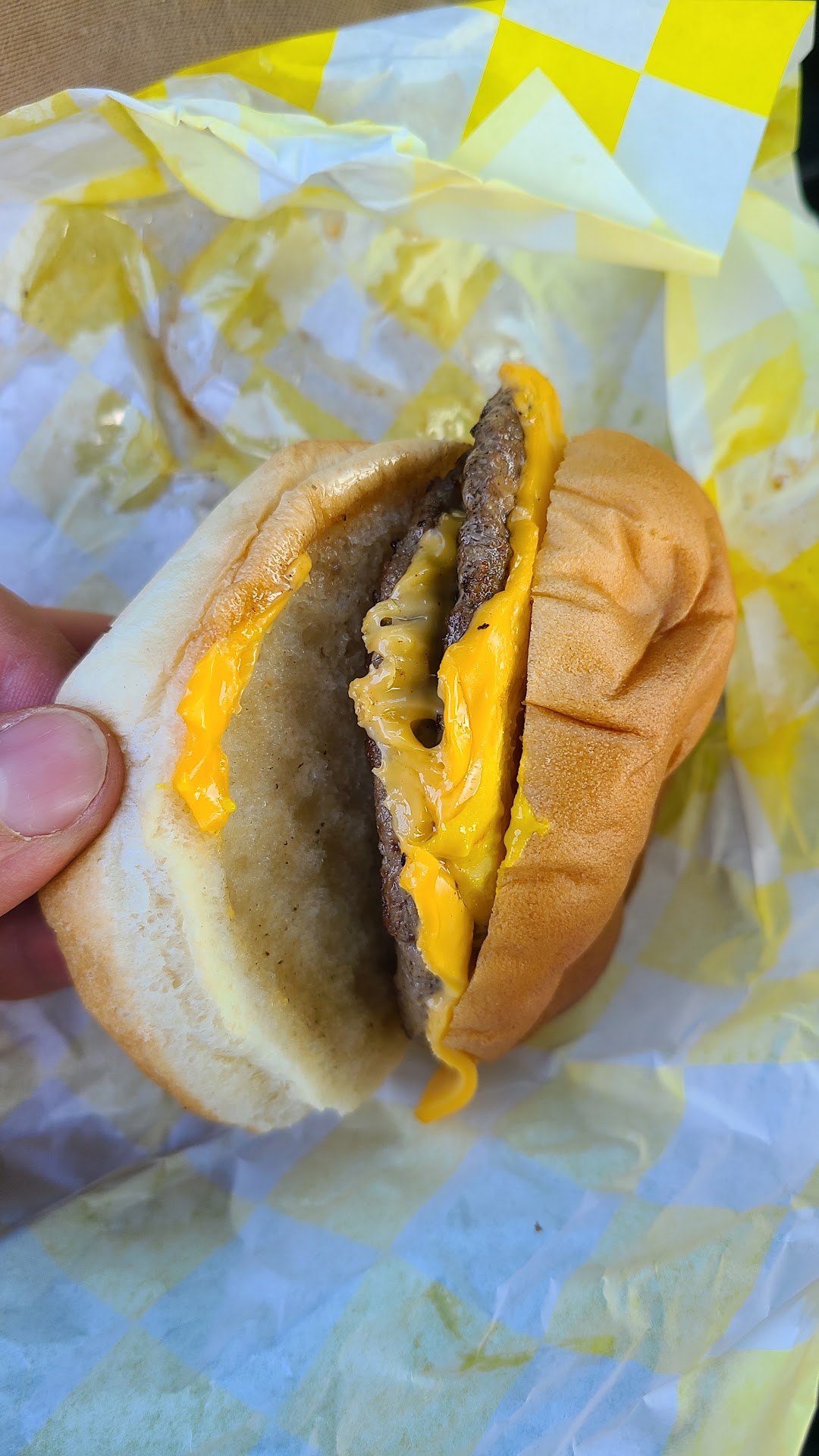 Read moreFood was good. Good burgers and fries. Got half sweet & half unsweet tea and it was still really sweet. Service was quick and food was fresh tasting and hot. Seating was not suitable for someone on the larger size. I had to sit between tables and eat to the side. There were booths only. No table & chairs seating. The booths are stationary. The place was jumbled in one area, with storage tubs for Christmas decorations, even though decorations had been put out. The windows were dirty, but the tables and eating...