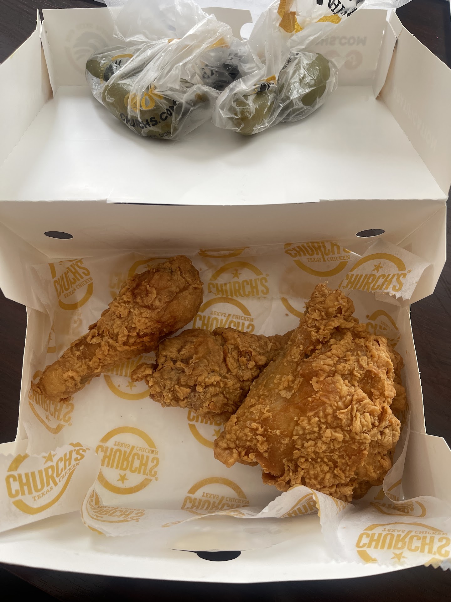 Ā Ā Ā Read moreBefore this location opened, my wife would drive by the empty lot saying how it would make a good location for a Church's. Then she could get her weekly fix without driving 20 miles. The location started off well enough and she was most pleased, since then things have changed. It started off with mistaken orders(wrong number of pieces, all dark orders when we ordered mixed etc.) now the quality of the food has changed. Two days ago we ordered a twelve piece and counted it before we left the window. When we arrived home and began to eat we found the food to be inedible. The chicken was overcooked and old, and this was at 4:00 in the afternoon just before the dinner rush. The chicken also tasted like it was cooked in very, very old oil. I'm done, I'll drive the extra miles to satisfy her craving next time. I do not like having to throw away food that i...
