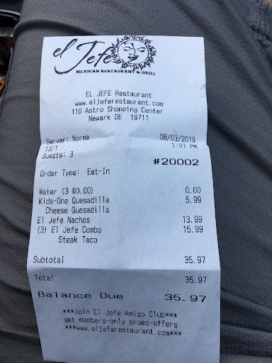 I ordered āEl Jefeā Sampler: Here is your perfect combination of fried mozzarella sticks, mini-cheese quesadilla wedges, jalapeƱo poppers, mini fried taquitos and a skewer of seasoned grilled shrimp. No substitutions. 12.99. Mozz sticks...good solid mozz stick. Quesadilla wedges...good, soft and had a little crisp to it as well. I liked it most with some of that house salsa. Jalapeno Poppers..fried in a light batter, on point, and easily better than a store bought frozen. Mini Taquitos...fried right, no too hard on the tips. The chicken inside was moist, had an excellent flavor, it really did melt in your mouth. Shrimp Skewer...wow these were so amazing. Seasoned just right. I could eat these shrimp all day. Look at the picture!!!