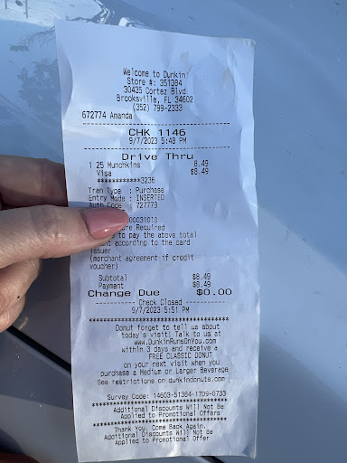 Read moreI live right across the street from this one. Even though it would be more convenient for me to go here, I drive out of my way to the one near my work instead. I love DD iced lattes. Every time I get one here it looks and tastes like plain milk. They are using a small shot of espresso for their large drinks, which is wrong. The shots are supposed to be according to the size of the drink. I've confronted them several times and they simply tell me to buy an extra shot. My guess is that the owner is being cheap and instructed the staff to do this, usually that's the case.