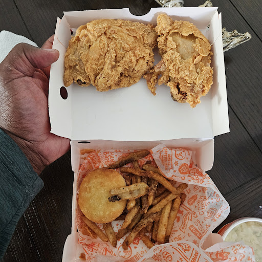 Ordered at 4:45pm for a 5:20pm pickup order. Attempted to pick up in the drive thru. I could barely hear the woman on the speaker. It for sure needs to be replaced. Pull up to the window. Was greeted promptly, gave her my order #, was asked to pull forward and they would bring out a $60 order. Well⦠maybe Iām a little too patient because I walked inside at 6pm and asked if my order was ready. No customers inside. They had my order sitting in a pickup box. Gave it to me, I count the items and leave. Get home. Our fries are rock hard and cold. Same with the biscuits. Chicken is cold and tiny legs that looked more comparable to chicken wings (see photo below: those are chicken legs next to small chicken thighs). Desert was hard and cold (apple and strawberry pies). Mac N Cheese tasted like it was reheated from 3 days ago. To say we are highly disappointed is an understatement. This place really should not be in business. Popeyes needs to shut it down. Iāll enlighten you on the fact that I think itās tacky to give bad reviews when not well deserved. Every establishment is entitled to an error or a bad day. Weāre all human. However, as I was waiting I saw this establishment do the same thing to an elderly woman that had her walker in the passenger seat of her car. Then they had another woman pull behind me that they were in no rush to service either. She was waiting behind me at least 15 minutes before I went inside. They had a ton of premade food inside that you can see from the counter. They were fully staffed. This is pure laziness and inconsiderate to customers. They truly had no intention on bringing anyone their food. Jokes on me sitting in my car thinking theyāre making everything fresh. Upon reading previous reviews this seems to be a common problem with this specific Popeyes. Head the warning! Itās true! Never again. Biggest waste of time and money. I can also see the common trend in their reviews. After someone leaves a one star honest review you see 3-4 ā5 starā bogus review/accounts pop up. Comical. One more thing⦠I HAVE to add this. The āspot in the grassā they tell you to pull up and park at has a deep hole. Thankfully it was still daylight and I saw it. I could have pulled out and forward to exit the driveway but had I done that I probably would have snapped a tie rod end on one of my front tires. Someoneās going to damage their vehicle there. Itās a...