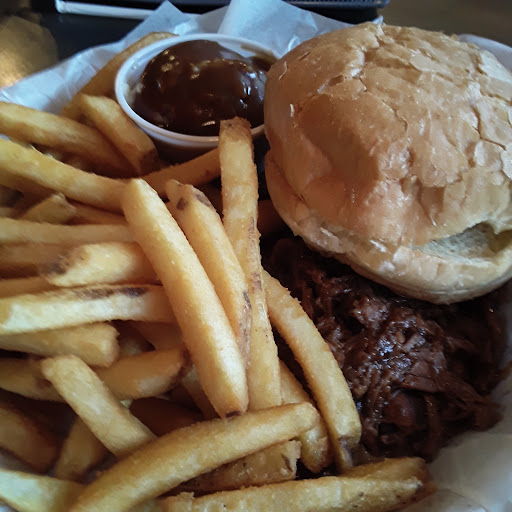 The parking lot is spacious and I've never had a problem finding a spot. The employees are extremely helpful. It's a family owned business which is great. Their prices are reasonable. The BBQ sauce is the best sauce I've ever had from anywhere. I especially love their sweet and keep a bottle stocked in my fridge at home. Handicap accessible and kid friendly. There's patio seating when the weather is nice and we love riding our motorcycles up there. The bar no longer exists which is a little sad but they've replaced that area with huge booths so there's room for many. TVs are all around the casual dining area. You order at the register and they bring your food out. You are responsible for trash & trays.
