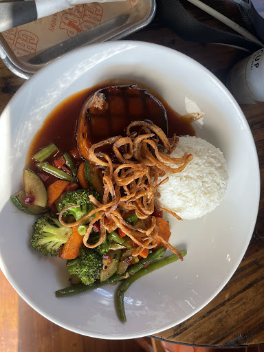 I had the Roasted Sirloin French Dip, and it was cooked to perfection. The mushrooms and melty cheese on top added so much flavor, and the sandwich was absolutely delicious. I paired it with the parmesan fries, which were equally tasty. My husband opted for the Asian Chop Salad, topped with crispy fried chicken and tofu, and he loved it. He said it was exactly what he was looking for and will definitely order it again.