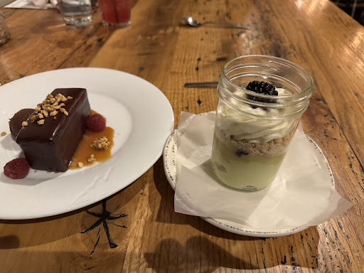 Read moreOver the years, I have come to set zero expectations when trying a new restaurant as I have been disappointed far too many times. That being said, tonight my family and I discovered Hickory & Ash on google maps when looking for a place to eat near the hotel my father was staying at and per usual I was curious but not setting myself up for disappointment. Whelp... I realized that after Sam our waiter had begun to describe items on the menu that this was not going to be a typical experience and the food was, for a lack of a better word, phenomenal. Sam detailed intriguing deconstructed interpretations of some familiar and other unique dishes, all of which begged to be ordered. We (group of 7 with 2 children and 1 toddler) ended up starting with the table bread and salted butter plus the âgreen eggs and ham, as well as the short rib pastrami. Dear lord! The beginning of this journey was starting on the right foot. The pastrami reminded me of burnt ends with the subtle smoke speared with tiny spats of grainy mustard, and the jar of my dr. Seuss favorite had me ditching the bread and just spooning it into my mouth carefully mixing each layer of the jar with each dip. Then came the main event of our experience; my father enjoyed the braised short rib, which he pulled apart with his fork and continually commented on its delight through mouthfuls of chewed beef. Both kids ate well, one had a delicious angus burger and the other juicy hand-breaded chicken tenders with triple fried fries-what! The âpickyâ toddler gobbled up the Mac and cheese, my wife had the roasted chicken which arrived skin on to her delight, she even said â the plate looks beautifully put together and actually tastes amazing too!â And I dove into the glazed pork chop, conveniently sliced into strips without being dried out on top of grits that full on tasted like milk and butter in its truest form! Finally after gorging ourselves on unique plates taking us on a culinary extravaganza I made the mistake of asking Sam about the desert menu. And here we go again...Sam detailed to me plates created with imagination and ingenuity that left me speechless and asking for practically one of everything. So we had the âspilled milkâ for the kids and all I kept hearing was âthis is our favorite restaurant Ever!â My wife had the carrot cake and she couldnât stop talking about it on the way home and how fantastic the pineapple chutney on top paired with the cake itself and how the portion was just perfect and I had the whiskey kissed butterscotch pudding with sour cherries and marshmallow. The cherries did a marvelous job taking the edge off of the whiskey and again I found myself shoveling the contents of a jar into my mouth not wanting it to end. Needless to say my family was honored to have experienced this restaurant and even though we live just over an hour away we have already begun discussing our return, thank you...
