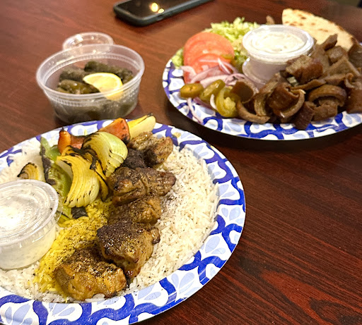 My husband got the shish Kebob platter. The bed of rice was plain cooked aside from a sprinkle of seasoning on top. The vegetables were completely charred. The steak was not cooked to order. He ordered medium rare and it was medium well. There were about 6~7 pieces of meat: the rest was the bland rice.