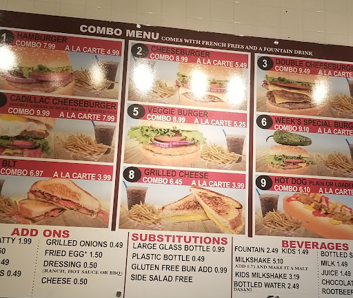 We ordered a “Cadillac Cheeseburger” which is advertised that INCLUDES Bacon and fried eggs on a $14.25 Combo base, No extras .