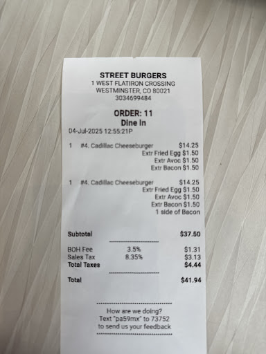 When we see the bill we got charged for it AND extra of fried eggs, avocado (that we didn’t ask for) and bacon. So when I asked the guy why are we getting charged for “extras” when the burger we asked for already comes with those items (but the avocado) as a base he said that the $14.25 is just the Pattie . I got pissed and I told him well your “base” burger not extras is way cheaper if you are saying that we need to pay for the extras that the “Cadillac” one comes with. I didn’t wanted to take it further but we clearly got robbed. Extremely disappointed of this service and the dishonesty of them we...