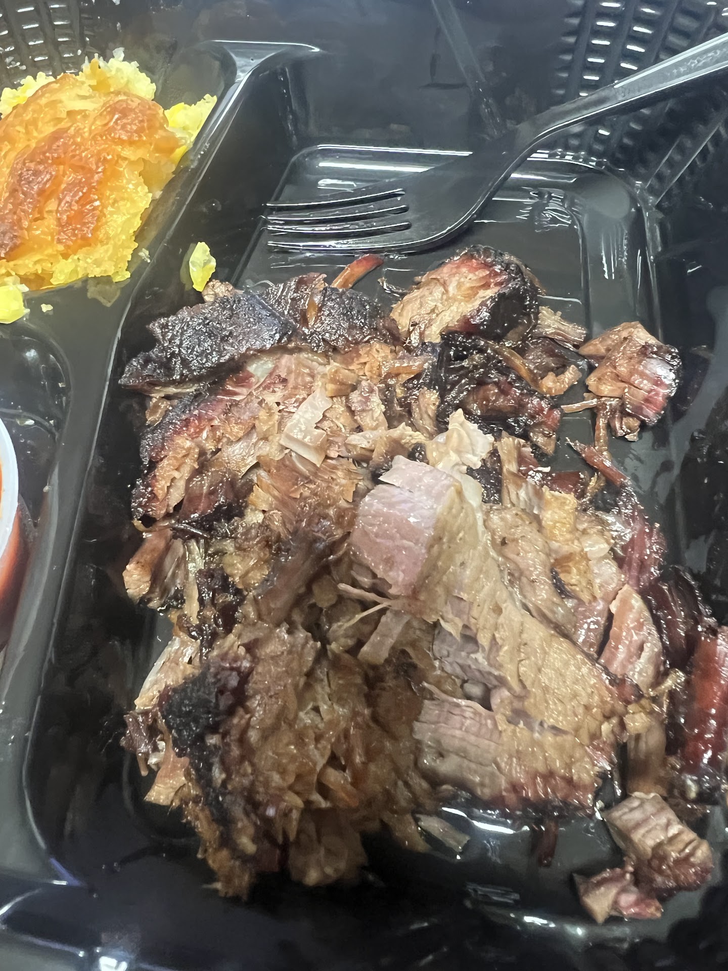 Read moreI really had high hopes from the reviews but I’m confused as to why. My coworker and I called in a to go and went picked it up. When we arrived at the designated time the food wasn’t ready. They were very polite though. When we got back to the office I was very disappointed at the food I received for $19. A small portion of brisket which looked like leftover chop (wasn’t even asked or given the option if I want it sliced lean or fatty like most bbq places I’ve been) and was dry, fatty and the bark was so tough it was like jerky. The sides were delicious but the meat was a let down. Sadly we won’t be back. Do yourself a favor and go to Blanchards BBQ in Lafayette the Q is always top shelf, and the portions...