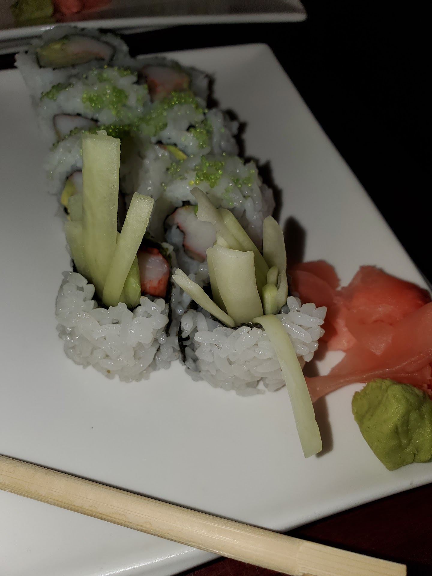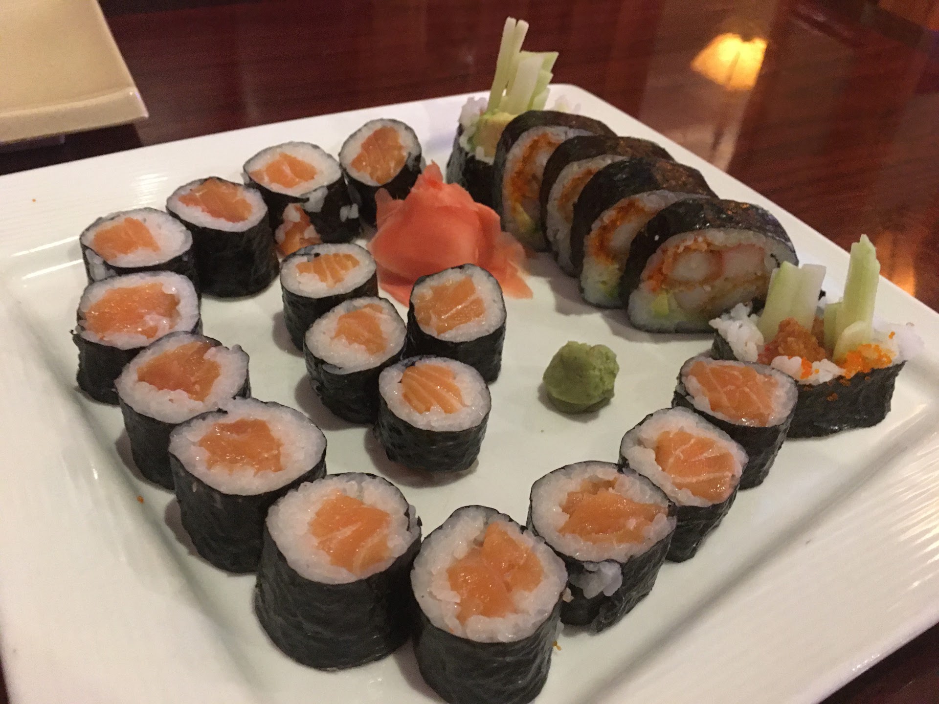 Honestly, I think it came down to our waitress being in a poor mood and/or just not caring. The food itself was great and the only complaint I heard was that the descriptions of the various rolls were nowhere near complete. My fiancee doesn't like roe, for instance, and intentionally avoided ordering any of the rolls with roe in the description. Well her roll arrived with roe covering it. We double checked the menu and it wasn't in the description.