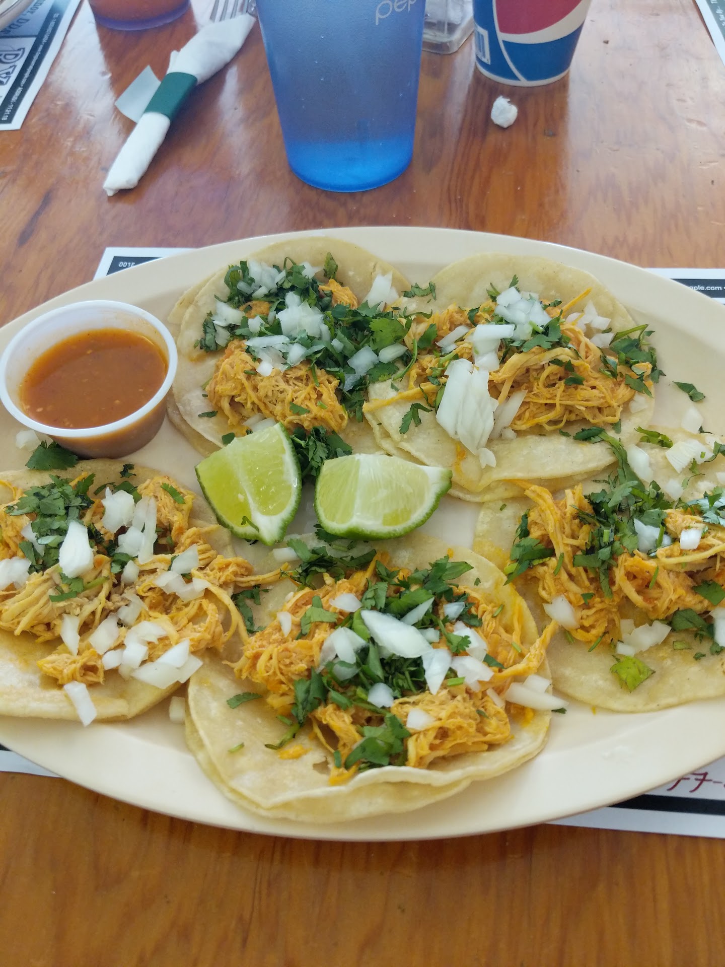Read moreI have been here before and it wasn't this bad. First, the place had 4 -5 other tables with guests. As we went to sit, the waitress warned us of salsa on the floor right by the corner base of our booth. We thought she may come back and mop it up or something. It was a spill the size of a dinner plate. Nope. It was there under foot the whole visit. We ordered guacamole as we sat down. She said it would come with the salsa & chips after we ordered (aren't I ordering now?) It arrived over 10 minutes after the salsa and chips. The ordering: my daughter ordered 2 Mexican steak tacos. I said, "I'll have two Mexican tacos, the same as her". Second daughter repeated "the same" and then I said my youngest daughter would also have the same. (That's 8 Mexican steak tacos). Somewhere it may have been asked about a chicken taco and the waitress was asking if my youngest wanted rice and beans too. 😶 I was confused because nobody had ordered a "Dinner", "Meal", "a side" or "rice & beans". The waitress was ordering us all the 3 taco dinner, even though we had clearly asked for two tacos (only). This would have added about $6 each, padding our bill $24!! Uhg. The bill said the waitresses name is Leah. You have been warned. So we have the salsa on the floor, the attempt to pad our bill, the extreme length of time for the food to make it to our table (tacos took about 25 minutes)... Now let's talk about the food. We added salt and pepper several times to the food. All Of It. The guacamole was mostly avocado. The salsa was mainly tomatoes. The tacos came with a sauce that was flavorless. My daughter dipped her finger into it to test the heat level. My other daughter asked what it tasted like. "Nothing" was the response. So then we all tasted it. She was right! It was like water with a touch of red and a couple of seeds. The taco was ok but had little taste. That tells me the cilantro was old, the steak had been massively over cooked and the onions were cut a long time ago. The whole dinner was so tasteless. The whole experience was...