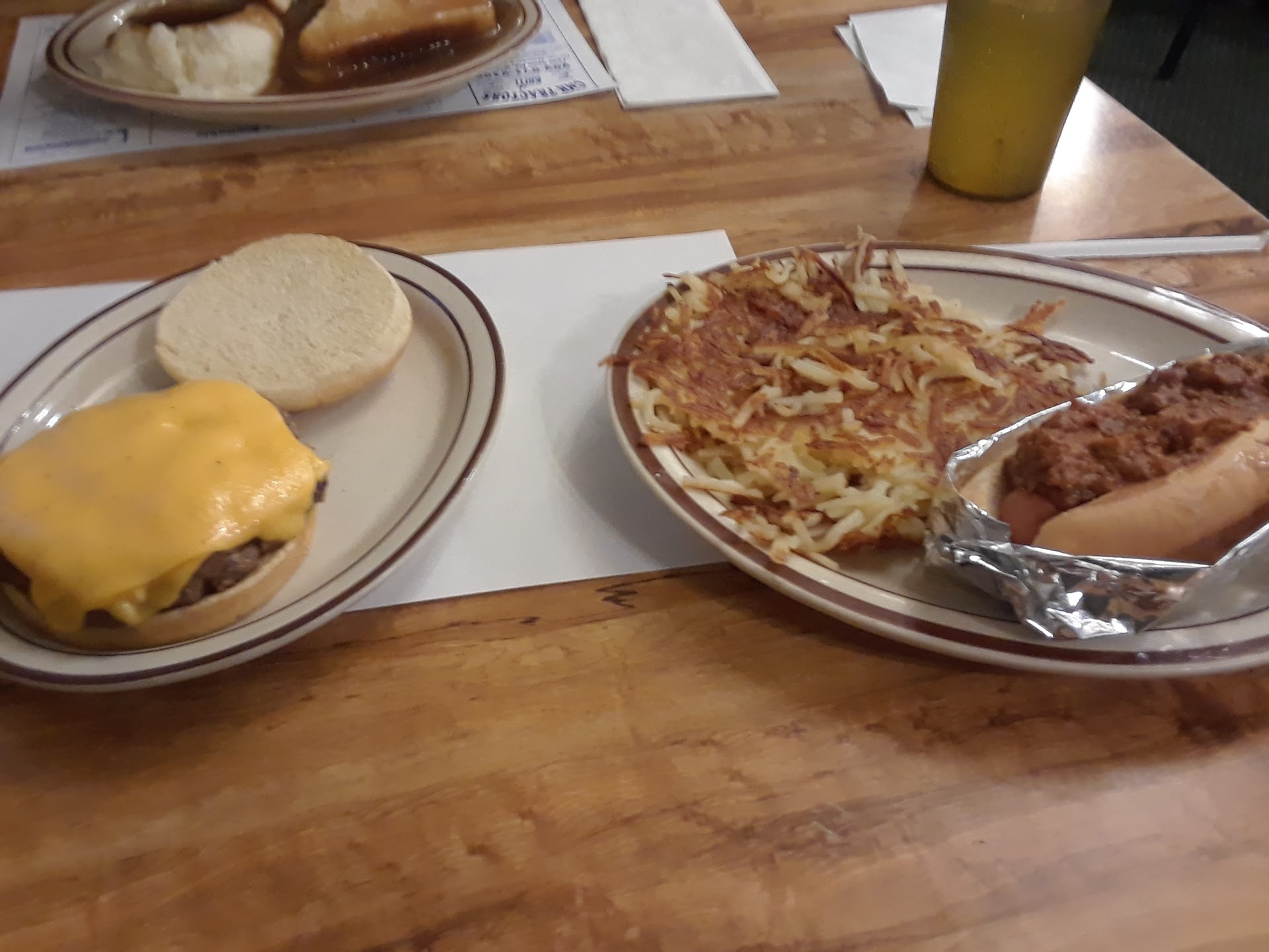 Read moreFood was decent and was a good sized meal but the service was honestly not great at all... Waited and hour for my food while the only group to come in besides me and my kids got served quickly they had their food in 15 mins tops. Also has the waitress pass up my empty cup multiple times to only refill it once . And for context it was not busy there was only 2 groups of people in there when I walked in already served . Only one group came in while I was sitting waiting all that time and it seemed that being well known by the staff got you better service cause they got served like they were royalty compared to my table . customers were taking their kids behind the counter and into the kitchen . I'm sorry but regardless of who you are your kids shouldn't be going into the kitchen during business hours unless they work there that comes across as unsanitary . I know it killed my appetite watching that kid touch everything he could on his way into the kitchen so I can only imagine what all got touched and is no longer clean in...