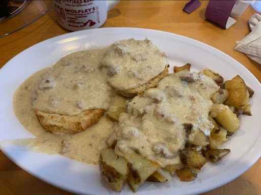 The food was pretty good. My husband loved his pancakes, said the scrapple was decent (could have been fried a touch more, but he likes his crispy) and my roast turkey sandwich w/fries and gravy were okay. The turkey was fresh off the bird, or had that feel and the fries were cooked well too. The bread was homemade, and I love that little detail, especially being in Amish country. The gravy though, that needs some help. It was just cornstarch slurry added to flavorless stock. Salt helped a smidge.