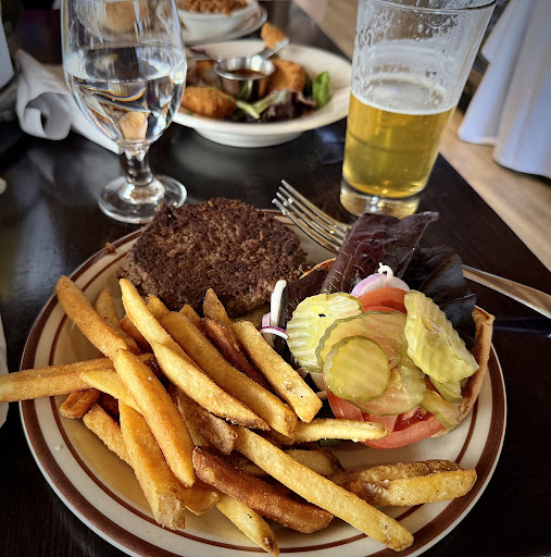 Disappointing. My $14 hamburger was dry and burnt. Our French fries were over fried and tasted like they sat under a heat lamp a half hour before. My niece's chicken sandwich was burnt so bad, she could snap pieces off the chicken rather than cutting it. We were comped for the sandwich. I watched the host be rude to a table who had been waiting for a long time for there order to be taken. The young foreign tourist politely said they were ready for their orders to be taken and the host replied "I'm not your server. I can't take your order." And he just kept on going. Didn't say, "I'll let you server know." No apologies. Just kept going. Oh, and the same guy dropped the f-bomb setting up a table for 9, but that party was sketchy and said they wanted a table for 4 & 5. Anyways, those polite foreign tourist sat there for another 5 minutes and flagged down another server. She hollered at some guy named Juan that his table was ready to order. And Juan was like 10 feet away. Like he was right there.