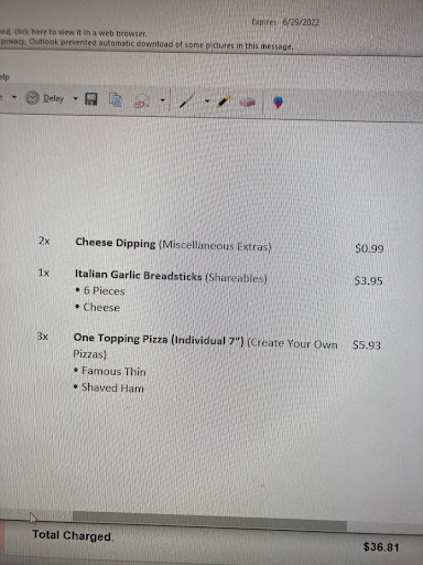 Read moreI live 2.5 miles, 6 minutes away from this location. When I called to place a delivery order I was told I lived in a "dead zone" and they couldn't deliver to me. Keep in mind, this location has delivered to me on at least 3 separate occasions; it was just this time they couldn't do it. The manager told me that their delivery contract had specific areas they could deliver to and that if I was outside of that zone that I would need to be voted in and placed in their contractual delivery area. I didn't realize I needed to consult the counsel of Donatos or appeal to Emperor Palpatine in order to get a pizza delivered. Mind you, I live less than 7 minutes away from this location and they have delivered to me before. Post edit: They contract to a call center located over seas. If you place a delivery order, be prepared to give your credit card number to someone in a call center in Pakistan or India. The brownsburg location is far too busy to take orders...