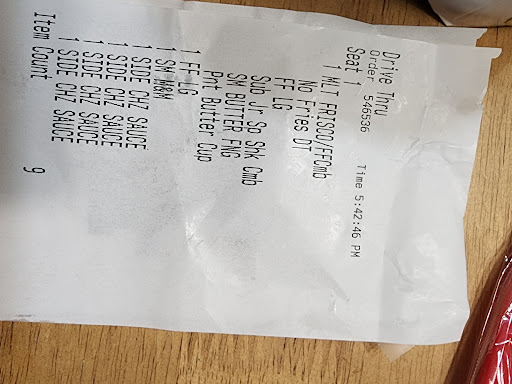 Ā Ā Ā Read moreI had not eaten all day and was looking forward to a Frisch melt and western bbq n bacon with egg on the top, same thing Iāve always gotten for years. I arrived at 6:54 I remember looking at the clock wondering how long it would take since there were only 2 people in front of me. I ordered then verified my order at the window. After I pay they tell me they donāt add egg anymore but says he can add a patty to my burger which is fine. Then a lady gives me a shake with ice cream dripping down the cup so I ask for some napkins. Then I ask if I can get a barcode or if they can scan my phone for the rewards program. Only reason I thought about it is they have a sign that says to do that. Then they tell me they donāt do rewards. I look at the clock and itās now 7:31 that Iām leaving after waiting in line forever. Then I go to eat the fresco melt and itās cold, not just not warm but cold like itās been in the fridge. My other burger was burnt and not warm. I also learn that they charged me for an additional burger that I didnāt order. The fries were decent but thatās all. The manager was nice but that doesnāt fix the fact I was in line for 30 minutes to get cold food at a FAST FOOD restaurant, if Iām waiting that long it should be fresh off the grill. At least they had a manager today because itās normally just kids...