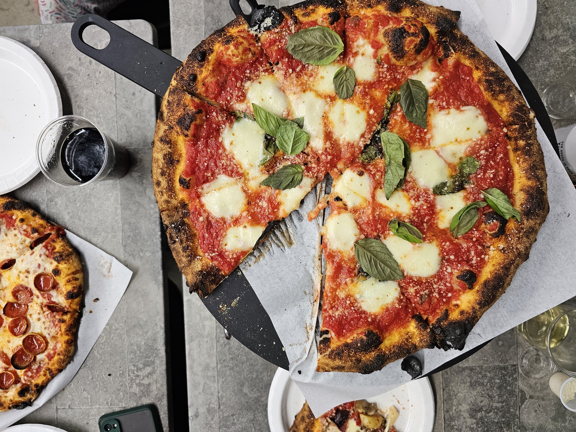 The food, wow. The pizza was so delicious. This is some of the best pizza we've ever had. Hands down. The crust is just crispy with the chewy inside. The toppings are flavorful and fragrant. Even through my stuffy nose the fresh basil was cutting through. We had a Veggie pizza, I forget it's name, and cheese pizza and a pepperoni pizza. Each had its own unique flavor. I've never tasted anything like that. Normally pizza is pizza with the added flavor of its toppings. Each of these was unique. It was a treat to claim my dad-tax as I stole a slice from the kids to taste the different pies.