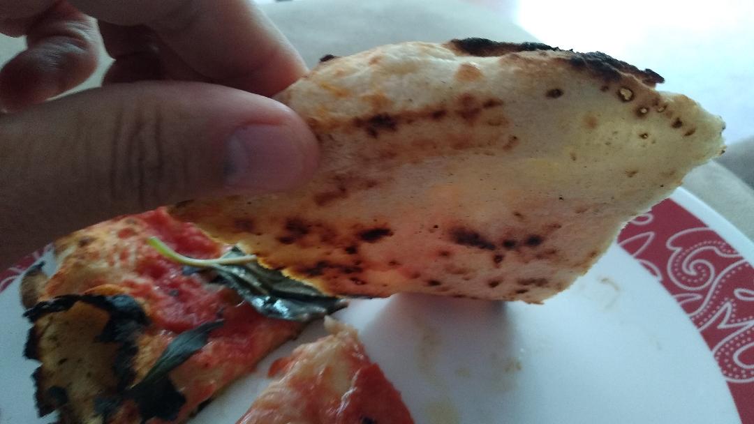 Flavor - The pizza has a very good flavor and what I would have expected, both crust and sauce. Everything was fresh. The sauce is very blended, so not a lot of tomato pieces in it and the pizzas I got. The dough is firm, but soft. The middle is thin, less than 1/4", but puffy and airy outside, which I would have expected. The bottom was perfect and nice light leoparding and consistent throughout. Even though these ovens and cooking these types of pizzas is very hot (800-1000F) and only taking ~60seconds, don't expect it to be piping hot, as an American pie. It was/will be warm. Pleasant, but I would have expected it a little hotter as right off the press, in the box, and only 10 min. drive home. Maybe this is typical and in Naples/Italy? I have 2 ovens at the house (propane and wood) and the pizzas come of extremely hot, so don't know. It wasn't bad, just not to expected. Wife said pleasant.
