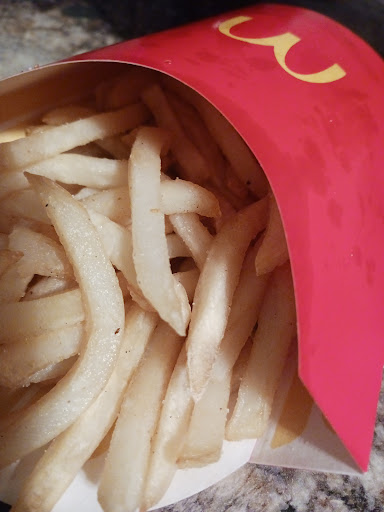 I stopped by 4th of July because Iâm pregnant and hadnât eaten all day after visiting a friend out there. The line was wrapped around the building which is usually normal for night shifts and especially holidays. This location was the only thing open and I had an hour drive back home so I thought okay itâll probably be alright since itâs busy. We waited in line half an hour before we even got to the speakerâŚstill normal night shift struggles I suppose. So Iâm thinking alright the food must be fresh because weâre waiting so long so we must be waiting on food to move the line. We finally get to the speaker and they tell us they only have 4 people so be patient. (They sound stressed even though thatâs normal for night shiftâŚ..Iâve run a drive through with 1-2 people most nights so thatâs more than enough to run that drive thru.) We wait another 10 minutes to place our order and we order 20 nuggets and 3 mcchickens and a fry. Well we pull up to the first window and wait 10 more minutes while 2 separate people walk up to the window because of something going onâŚ(forgotten food, mobile order didnât go through?) We get our 3 mcchicken and fries and nuggets and pull away⌠The fries were definitely sitting in the bin for more than 7 minutes (the official hold time the fries are good for) The nuggets were squishy so I know they mustâve dropped too many and then proceeded to let them sit in the cabinet and probably ignored the hold timeâŚ. And one of our mcchickens were plain which shouldnât have happened if they had stickers⌠The buns on all 3 mcchickens were burnt and squishy to the point where you can barely chew it⌠Couldnât even eat the food as all the meat including the mcchickens were old as hell. Definitely a...