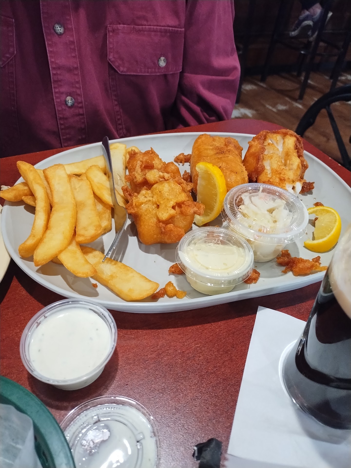 I ordered the frog legs, which were okay. Not the best I've ever had, but definitely decent. My dad got the codd, which was pretty good.