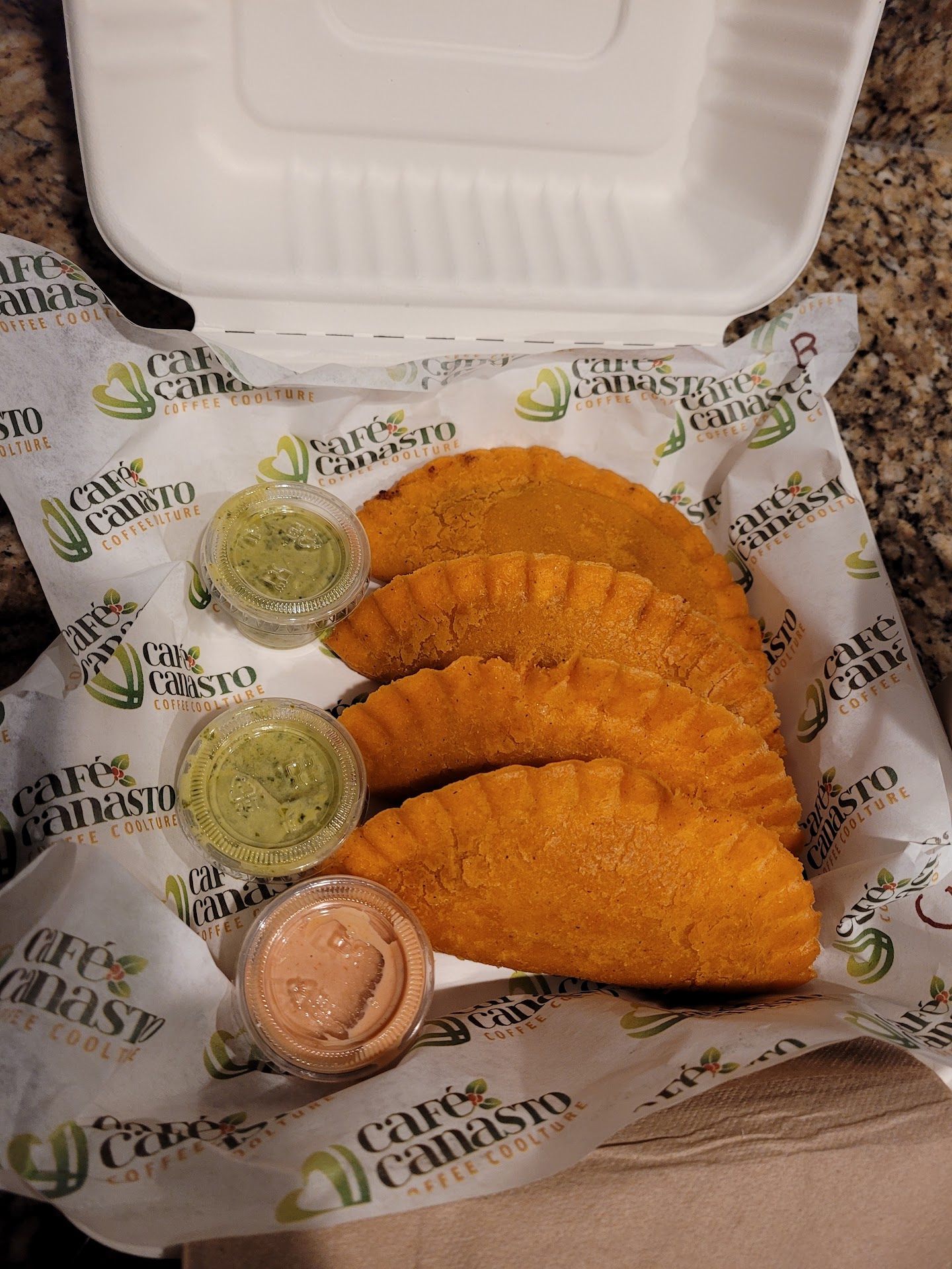 I ordered four number one's aka the medellins(empanadas in beef,chicken or mushroom). With a iced salted caramel coffee sprinkled with cinnamon. I heard months ago that this place had great Colombian empanadas so I finally remembered and decided to pull the trigger and try them. The empanada itself was not to crunchy, but enough the flavor definitely was distinct and still tasteful]. Both types of empanadas were good, but if I just had nitpick the chicken ones seemed more flavorful. Although beef ones were soft they just seemed to lack seasoning. Coffee drink was delicious not overwhelming with a sweet flavor and little sprinkle of cinnamon was a nice touch. I want to go back and try something different. I can't say anything about the atmosphere since I did the drive through. The attendant who assisted me was very nice and social. I don't think that a little lack of flavor for my beef empanadas merits four stars. Food was fresh, well packaged and...