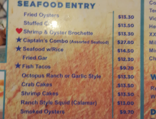 Read moreI will not be coming here again for these 9 reasons: I'm from NY, and the food was expensive by NY standards. For Brownsville standards, it's absolutely ludicrous. Some prices were different in English and Spanish menus. (See "captain's combo" on attached photos.) Why? Waitress only spoke Spanish. Waitress got my order (calamar ranchero) wrong, brought shrimp (camaron ranchero) instead. Waitress then spent a full 30 seconds insisting that it was in fact squid. Fixed order was brought out in 3 MINUTES which suggests that yes, it was DEFINITELY frozen. Food was okay. Ranchero sauce/stew was very spicy. Way spicier here than at any other place I've been in Brownsville, and I've been living here almost 6 years now. Annoying pop music playing over speakers the entire time. Sign on the door says "online menu" but there isn't one. (I didn't personally check this but I sent the link to my brother since we were bringing food for him and he said it...