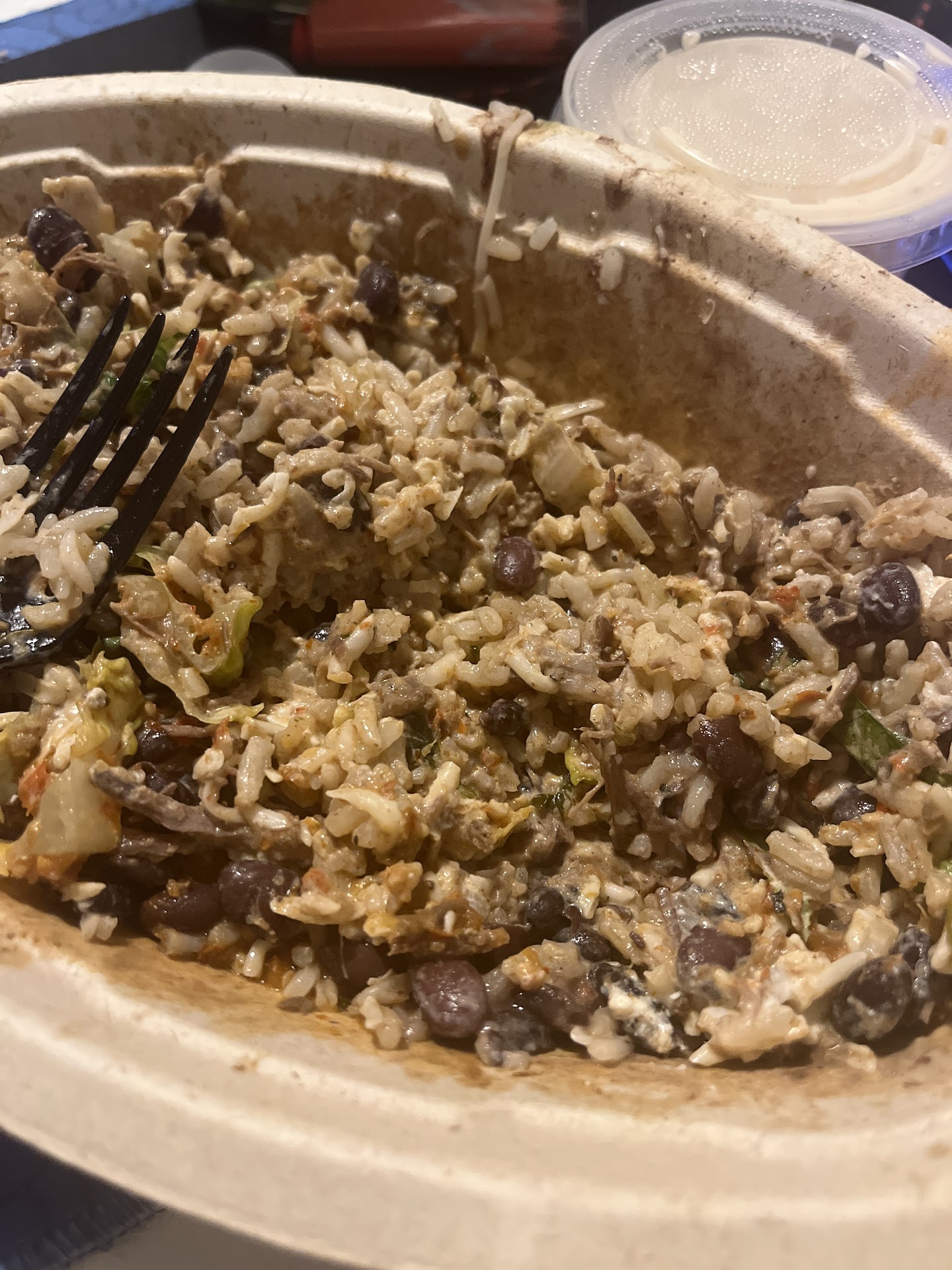 There were 3 people at the register 2 on the line and 1 cook at the back. Get to work. Wipe tables. Check the times. Have self awareness and look at your customers to see if they're doing alright. I won't be returning. This is thoroughly disappointing and that was my 3rd attempt at redeeming it. I loved chipotle bc I used to work there and tbh the steak and rice is 10/10 but at 15.00 for THIS...