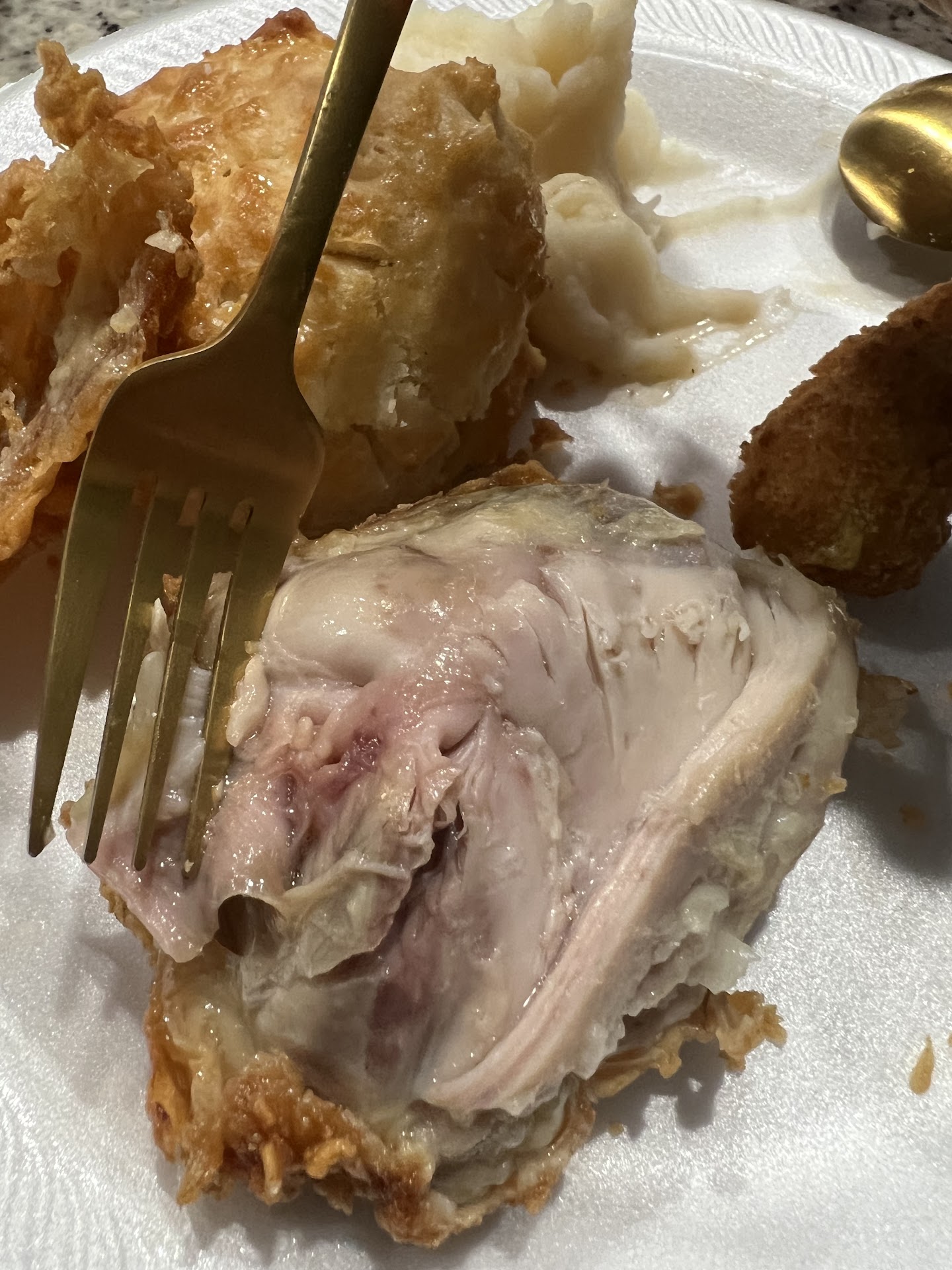 Read moreOrdered a 3pc got a 3 pc tender basket instead. Already cold and one is spicy. I could've gone to whataburger if I wanted tenders. I should've checked after just a few seconds ordering they forgot if I wanted fries or mash potatoes. If I didn't need to eat at this moment I would go back for the correct order and hot juicy chicken. I'll eat this dry abomination for now and be clear on my next order, or...