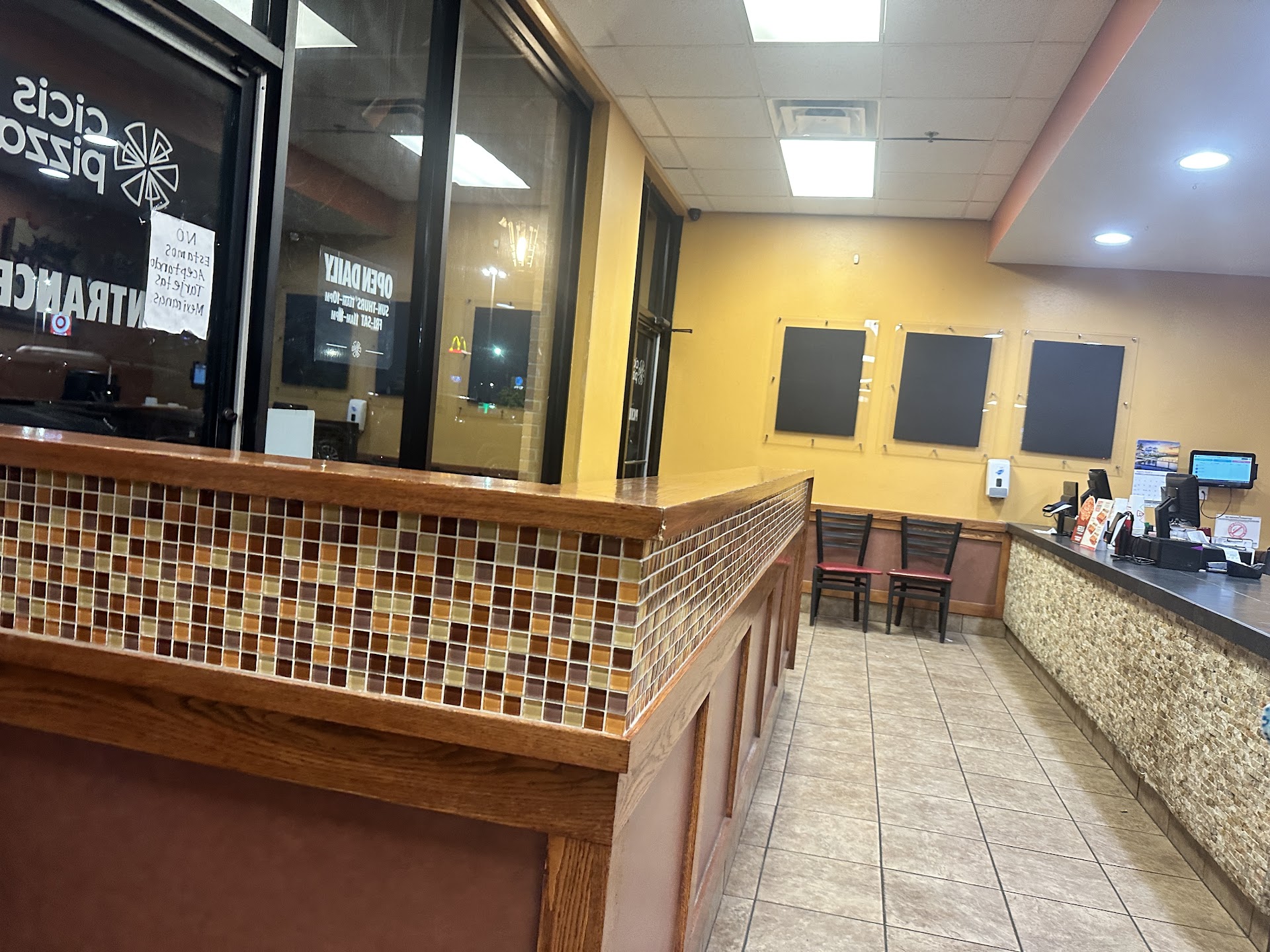 When I was eating one of the Hispanic lady came to this restaurant and selling her own masala fruits to the Cicis customers. She asked me to buy her fruits pack. That Hispanic lady is not an employee for Cicis but by the way of talking I understand she knows all this Cicis employees well. I donât think Cicis chain service is allowing these type of selling inside...