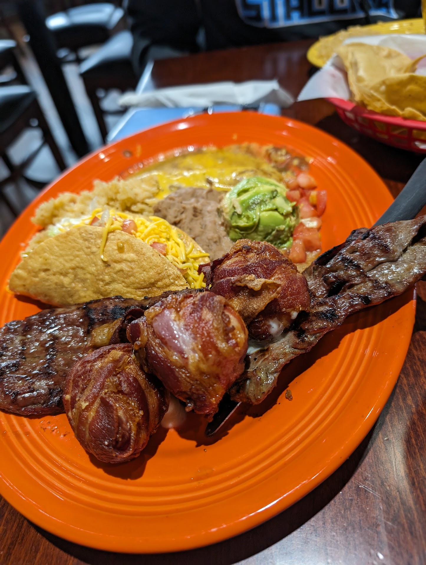 Came back wanted the chicken ka-bobs and was a total dissapointment yall.. i mean how is it called chicken ka-bob and no chicken but ham and cheese wrapped in bacon seriously??? NO this is why i returned to come and eat this dish it is only 4 pieces and yet they messed it up. Mgr came to table gave me a horrible excuse. Said im sorry but the kids/workers sometimes they do and sometimes they don't. Im like whaat??? Then you shouldnt give false advertisement on your menu. It dont make sence whoever is running the kitchen need to be 101 on the dish to be prepared for client. If not what are you paying for food that was omitted from the plate and still get charged full price. Come on now... here is the pic of what I mean. Then he tells me after i still have my dish i wait meanwhile getting cold he brings me like 3oz. Of grilled chicken fajita to put in the ka-bobs🤯 I was just baffled. Idk what to think. Last time it was the flautas being empty and now this. Oh well live and learn just when I thought it was a great spot to eat here they dropping the ball... less food and pay more. What a disappointment!. The menu tells you what's in it. We'll it was incomplete.